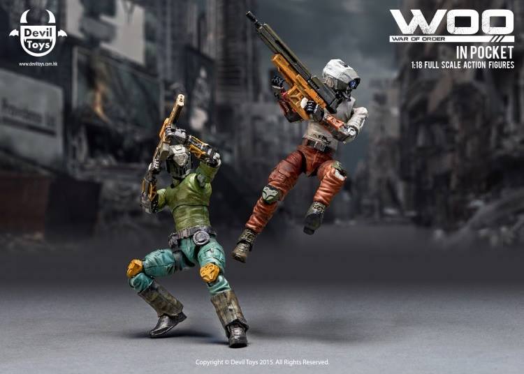 WOO – War of (new) Order is a sci-fi story based on mysticism. In the year 2047, at a time when the world is at the brink of World War III, countries around the world are utilizing mercenary and high-tech companies to participate in this full scale advanced warfare. With the WOO in Pocket figures, you get the same high quality figure you expect from Devil Toys in a smaller 1/18 scale Form.