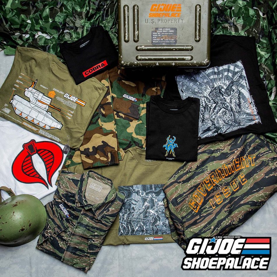 Well fans, get ready to do some more shopping, as Shoe Palace has revealed an assortment of G.I.Joe Apparel! The assortment revealed includes Tee Shirts, Hoodies, Tank Jackets and even a Sneaker Bundle package that includes a 5 panel hat! Check it out: