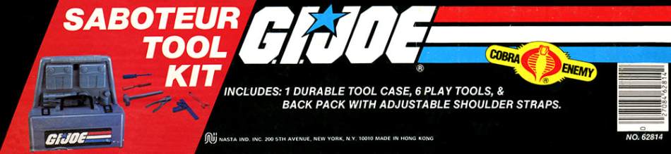 The Saboteur Tool Kit came with six tools and two snap pins that connected the tool box to the backpack frame, allowing you to live out your dreams of being the Cobra Saboteur, Firefly!