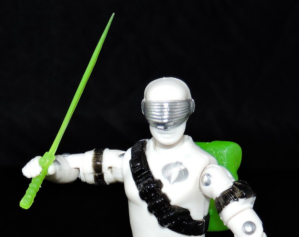As far as gear goes, the Cobra Ghost Mortal comes equipped with his Sword, Uzi and back pack.Collectors, please note – The Sword IS SHARP AND HAS A VERY POINTY EDGE. As such, I wouldn’t recommend that particular weapon for smaller children (and you be careful too, lol!)