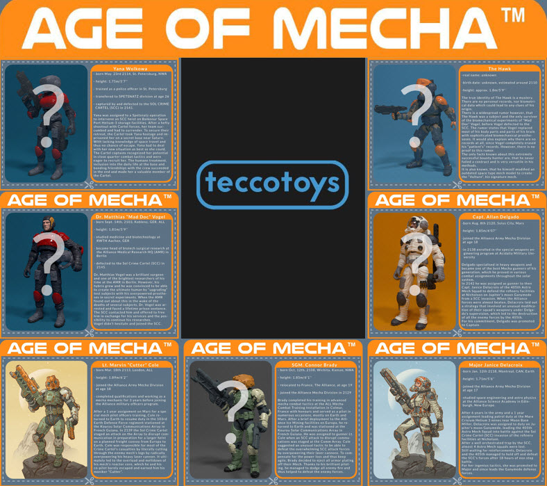 Over the course of the last week, the fine folks from TeccoToys have been sharing reveals of the figure collectors cards that will be featured on card backs for offerings from their upcoming Age of Mecha line.