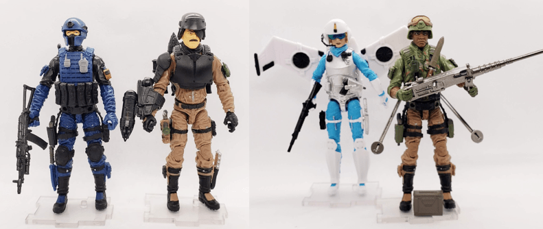 Each figure comes with enough gear to ensure that they complete any & every mission objective.