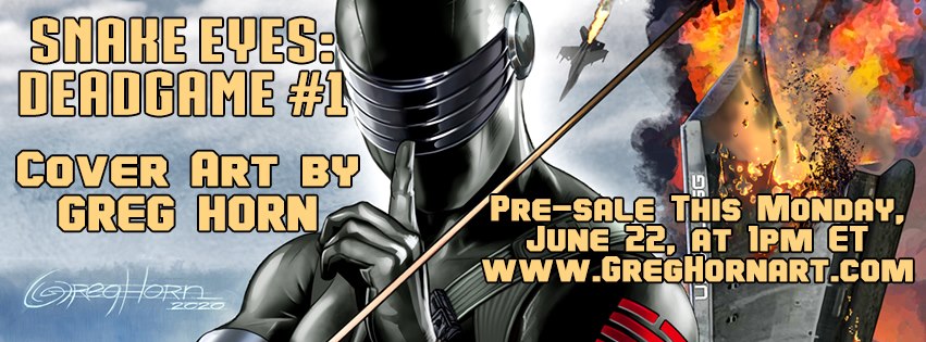 Details:SNAKE EYES: DEADGAME #1 GREG HORN ART 3-SET PRE-SALE is MONDAY, June 22nd, at 1:00pm ET www.greghornart.com