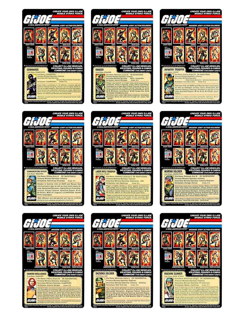 Series 2 includes 9 cards marching in from 1983 and includes Tripwire, Gung-Ho, Doc, Torpedo, Snow Job, Airborne, Cobra Trooper, Cobra Officer and Cobra Commander!