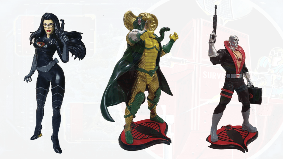 From PCS Collectibles. Go Joe – and collect these cool 1:8 scale statues of the Real American Heroes’ deadliest enemies: Baroness, Destro and Serpentor.