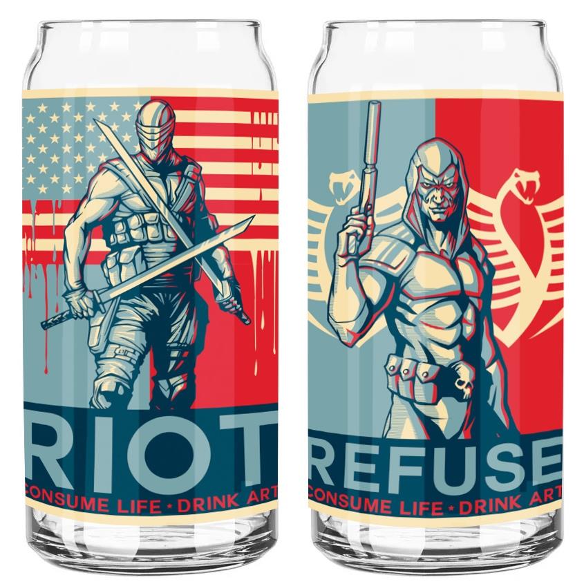 We are releasing an extremely limited set of 7 glasses to commemorate our GI Joe inspired series. All of these have the same shape and size as our 16oz tallboy cans, with each glass featuring a full color wrap emblazoned with a label of each release in the series.