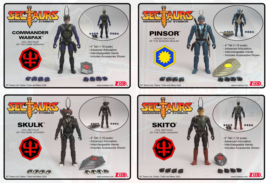 After a having a huge success with the Sectaurs wave 1 and wave 1.5 action figure series, ZICA Toys is finally ready to offer the exciting lineup for wave 2! Pinsor, Commander Waspax, Skulk and Skito are ready to join their respective factions and continue the battle between the good forces of the Shining Realm, and the evil forces of the Dark Domain!
