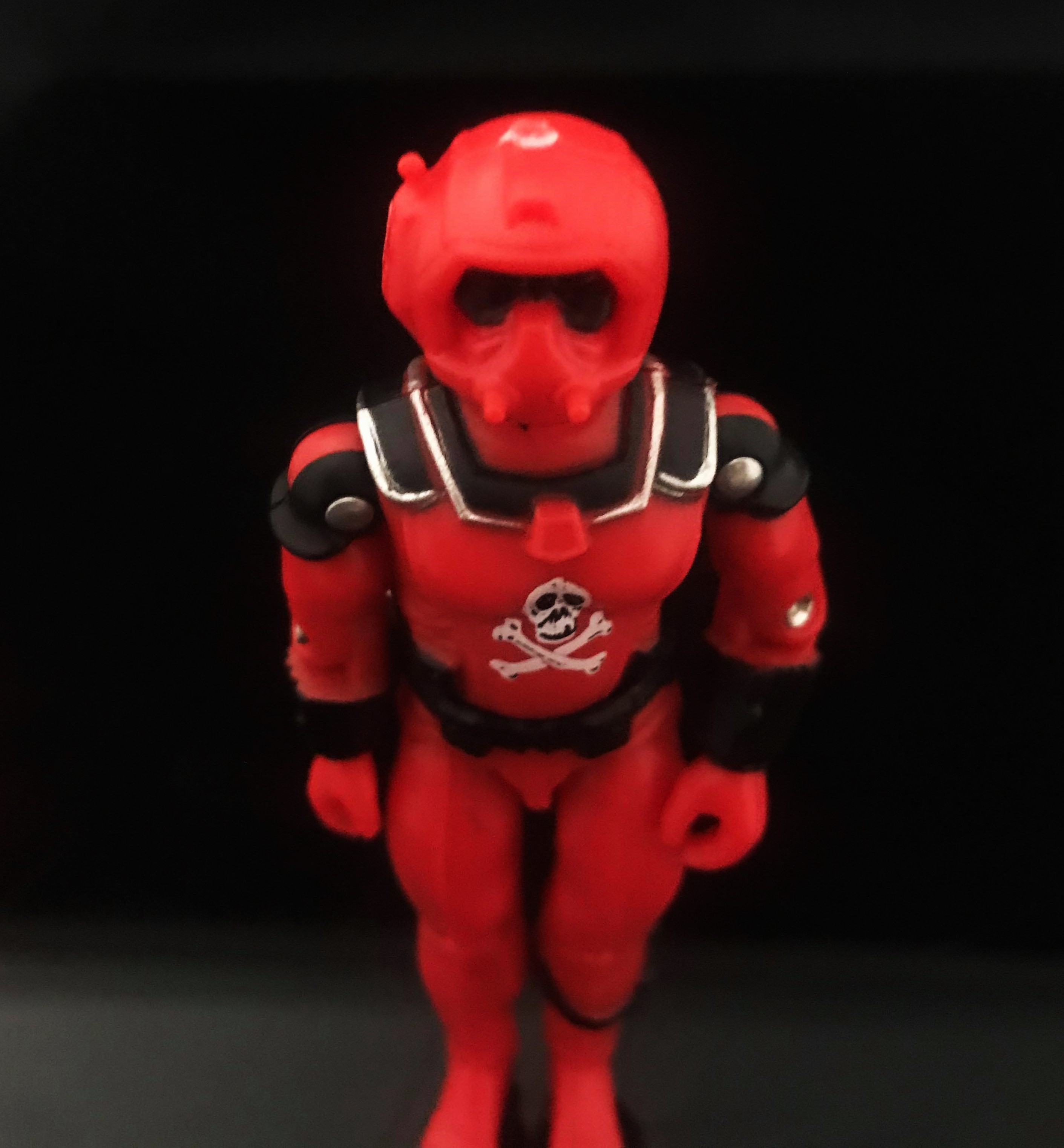 Primary colors always pop, but there’s something about the rich red used as the base color on this mold that really makes it something special. Its black & silver highlights blend perfectly, with the iconic Red Shadows Skull & Cross Bones logo dead center of the trooper’s chest.
