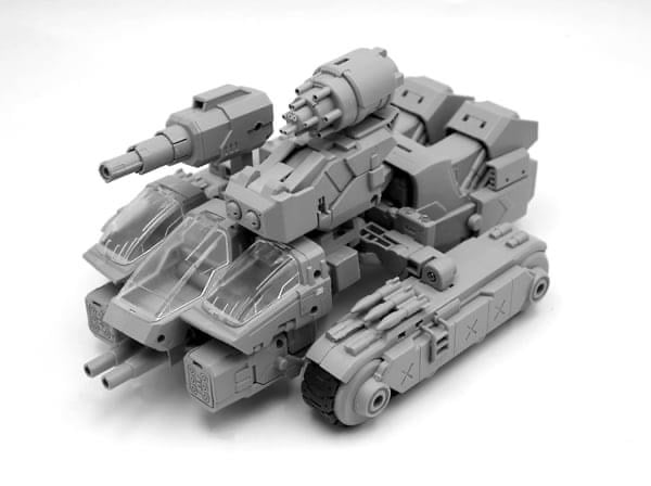 The reason would be because STC-02 is based on none other than Don Figueroa’s Dominator Megatron, transforming the fearsome leader of the Decepticons in to Destro’s Iron Grenadier Transport! Check it out –