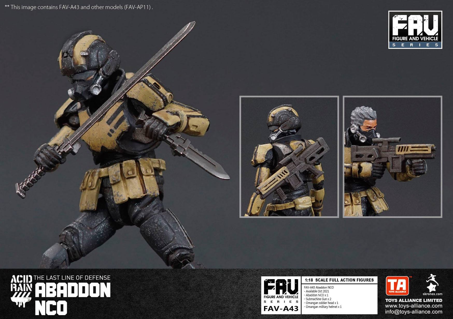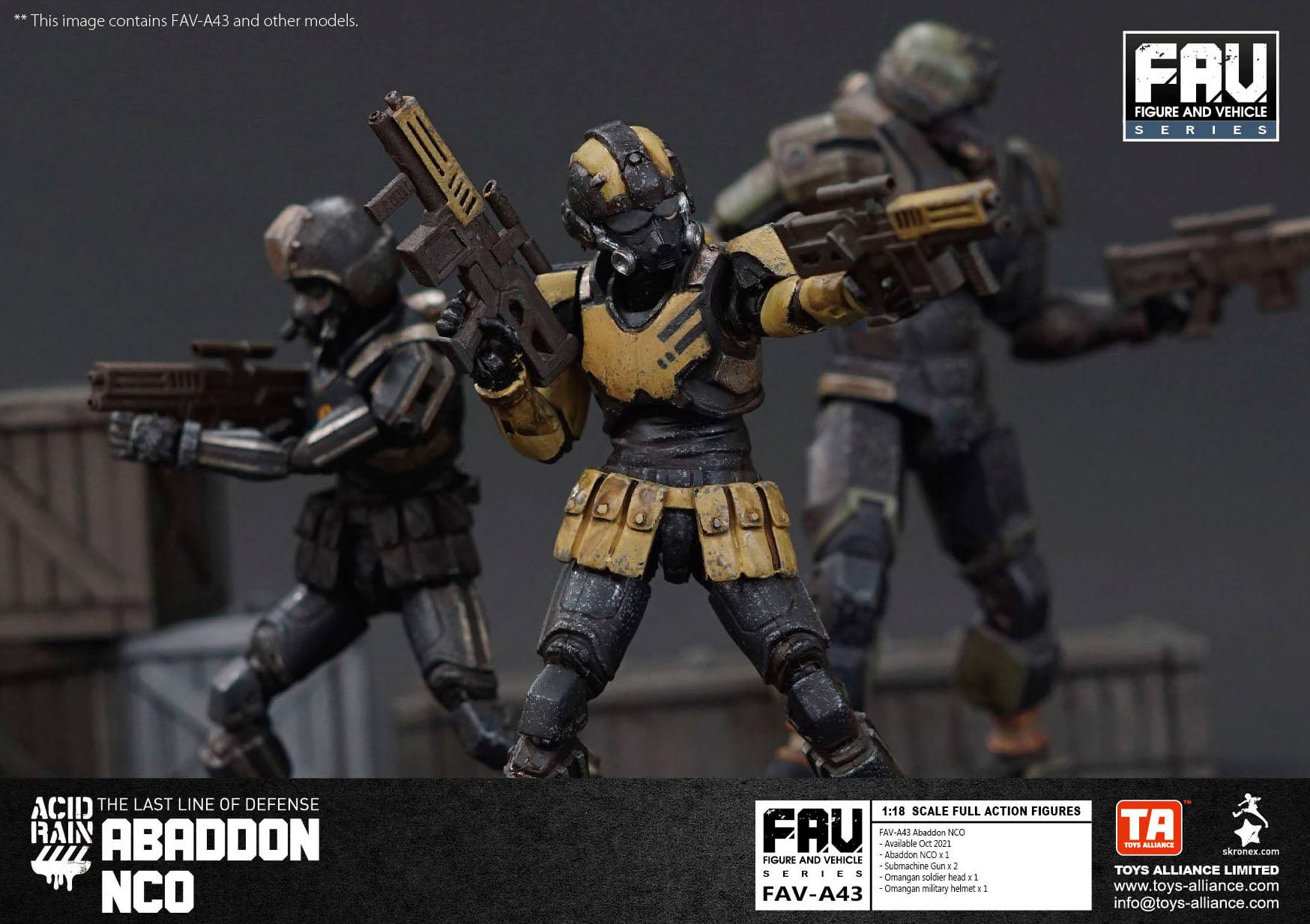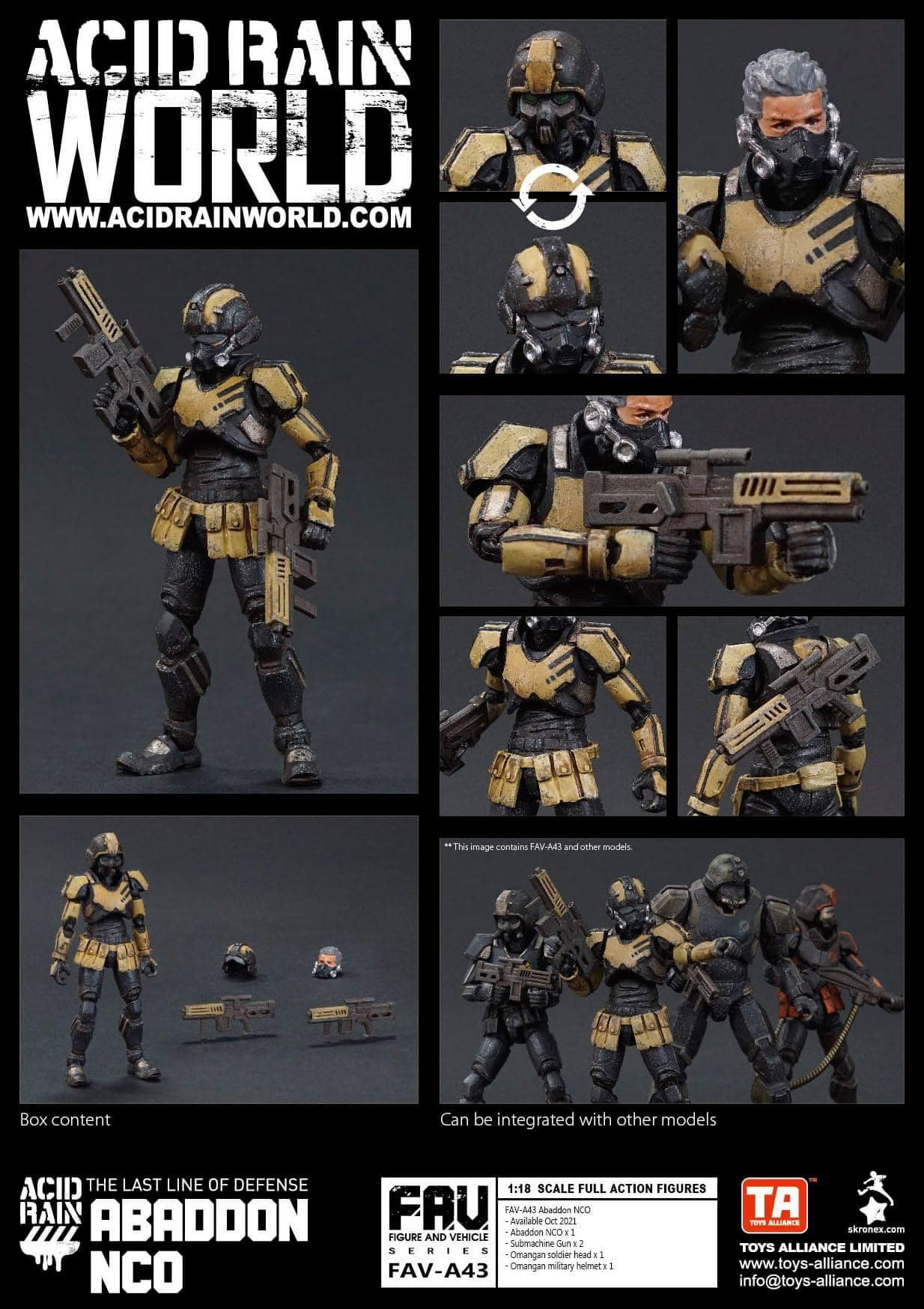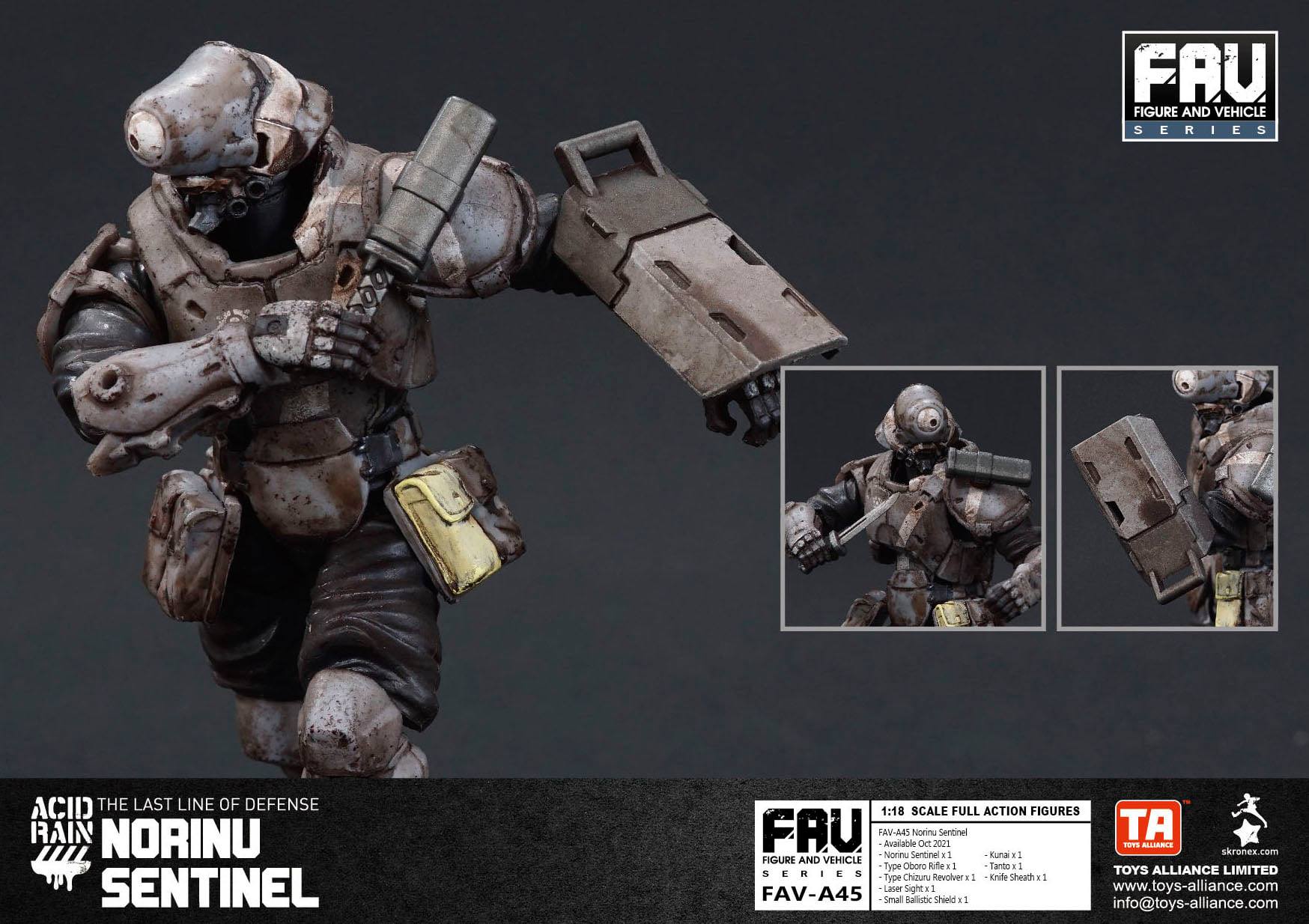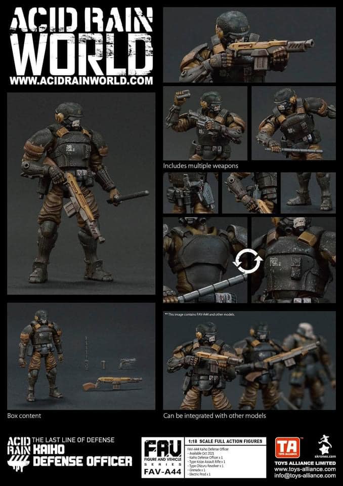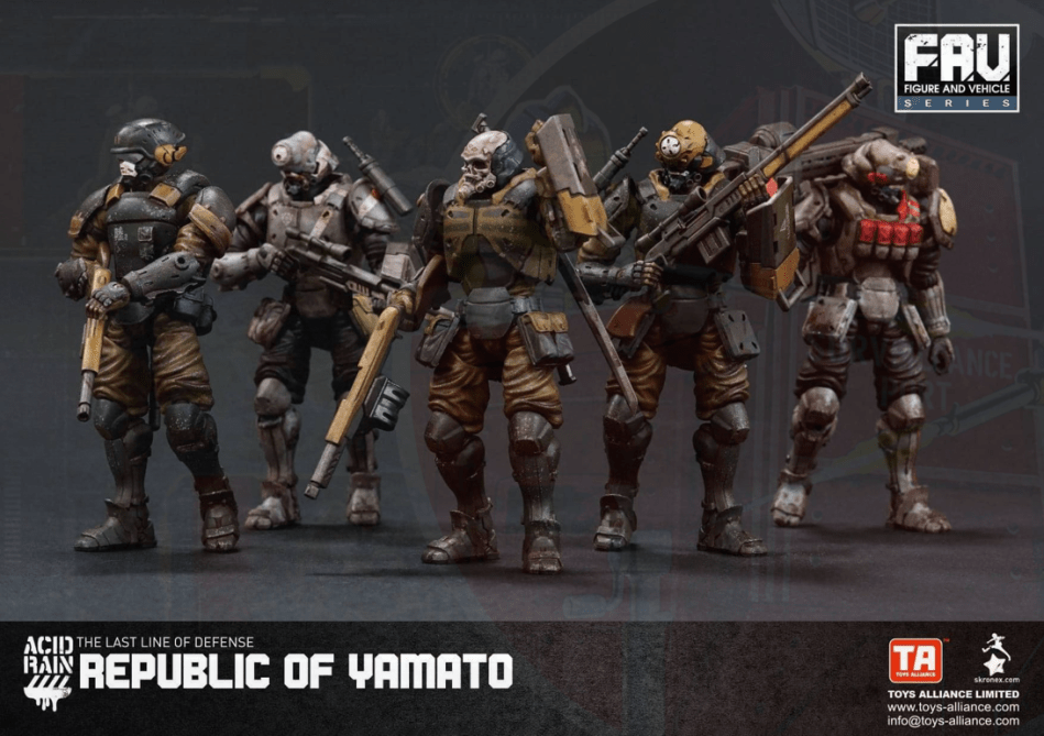 Last, but most definitely not least are a pair of reveals that have me super excited! For those that have been following the Acid Rain World from day one, or even in case you haven’t, one of the factions fighting for the war torn landscape of the Acid Rain World are the troops from the Republic of Yamato! Finally, we now have our first two figures from the Republic, FAV-A44 Kaiho Defense Officer and FAV-A45 Norinu Sentinel!