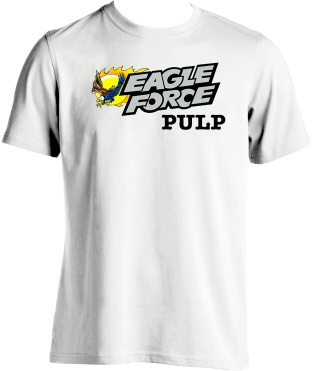 Wear your Eagle Force Pulp with pride with this limited Eagle Force Pulp t-shirt. Chris each out to confirm shirt size after the order is placed.