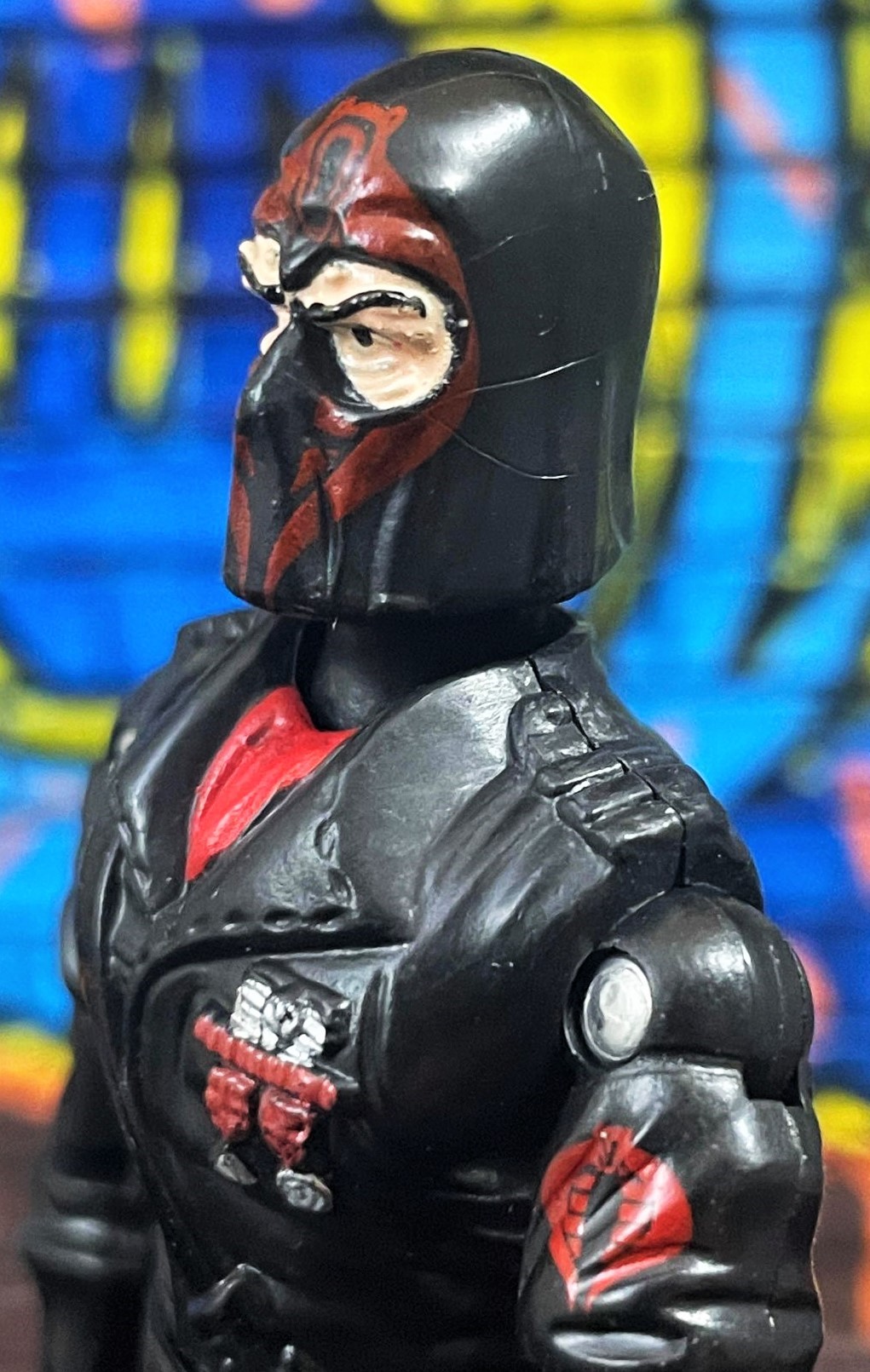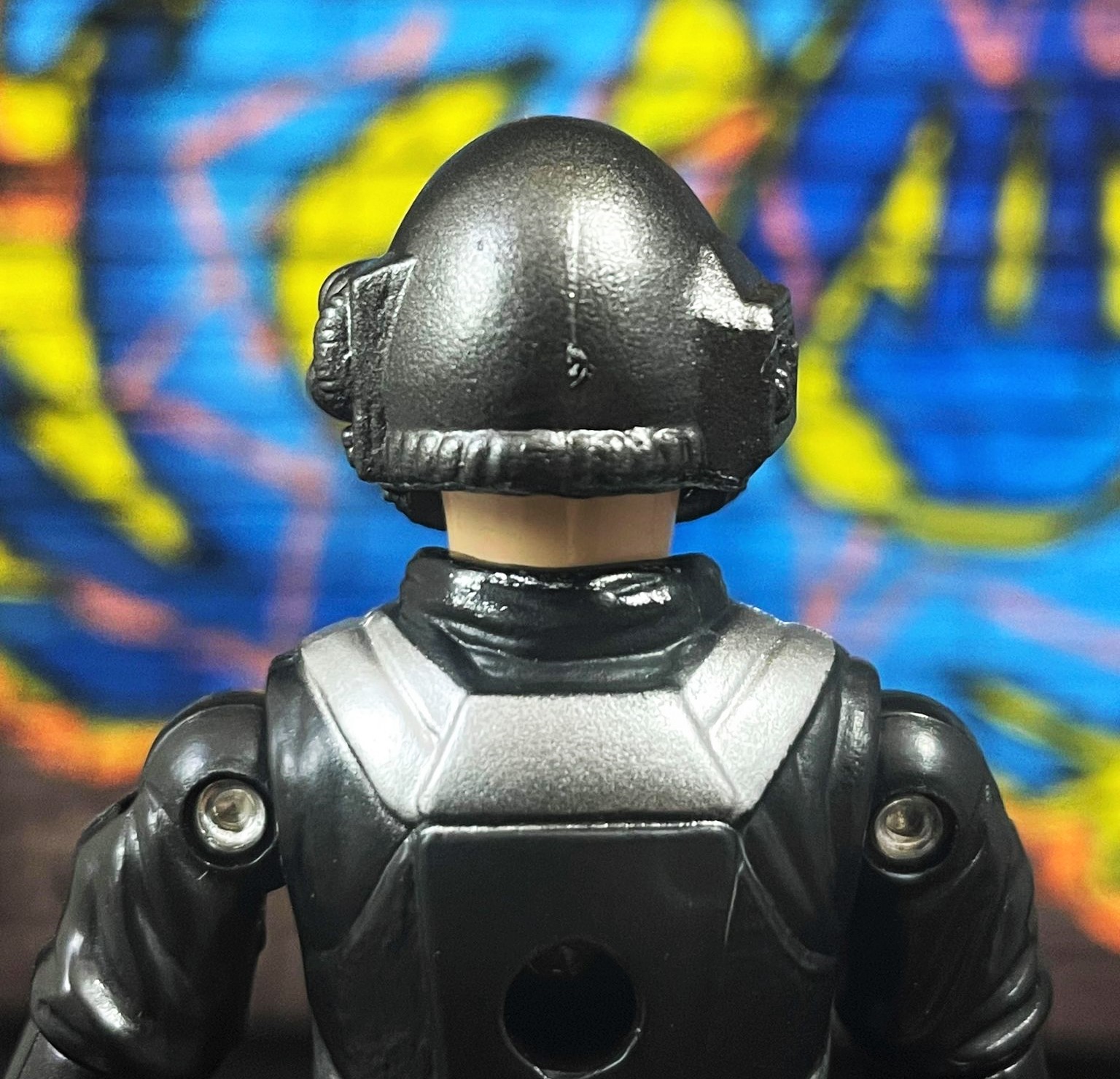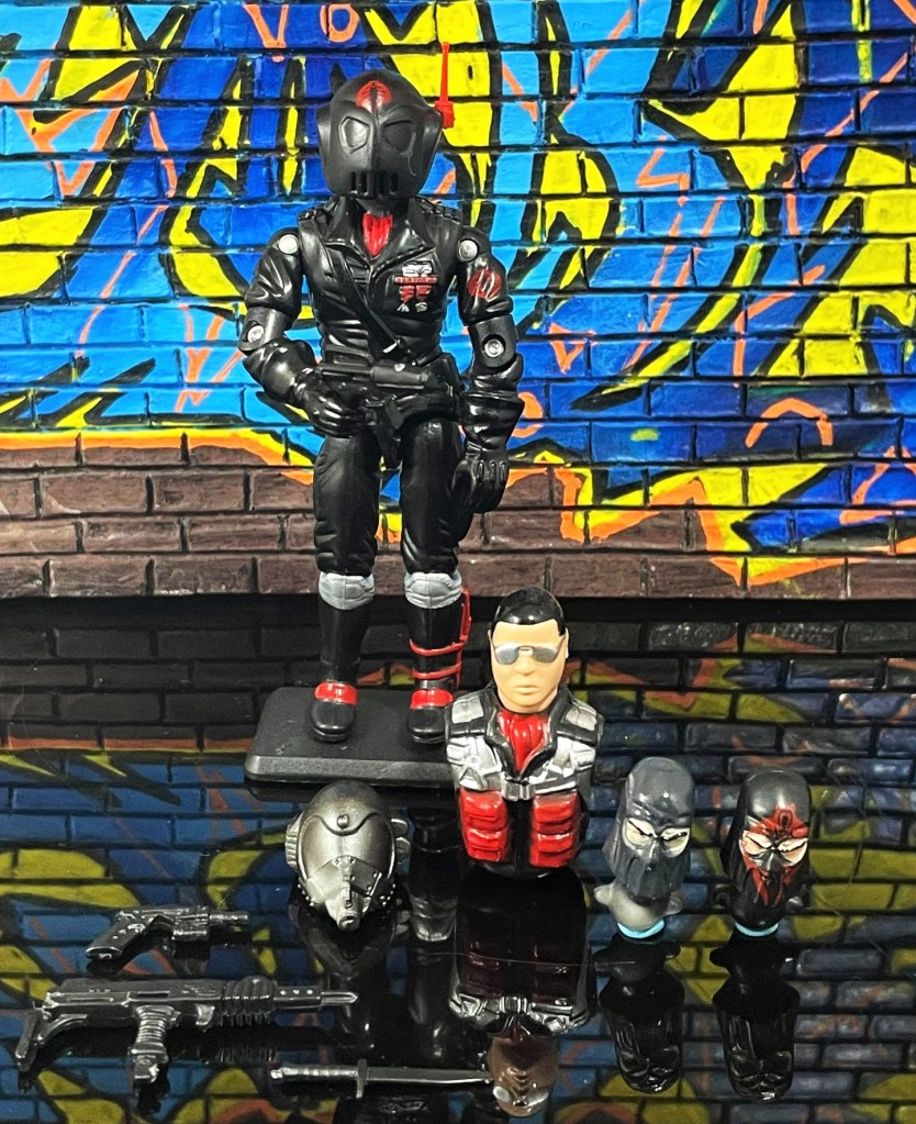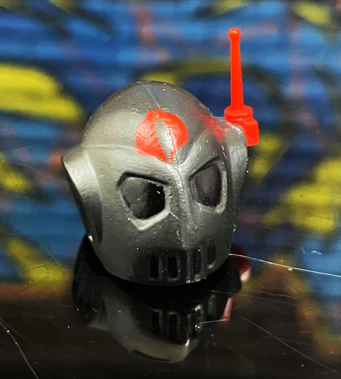 The Night Ops set included (2) variations of Hooded Cobra Commander’s head – One was a Charcoal gray/black, the other jet black with a red cobra logo across the face.