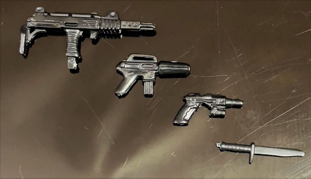 Four different weapons round out the assortment – a Knife, 2 laser pistols and an uzi/submachine gun. They fit pretty well in each figure’s hands, but for me, the pistols work best with each figure and compliment them perfectly.
