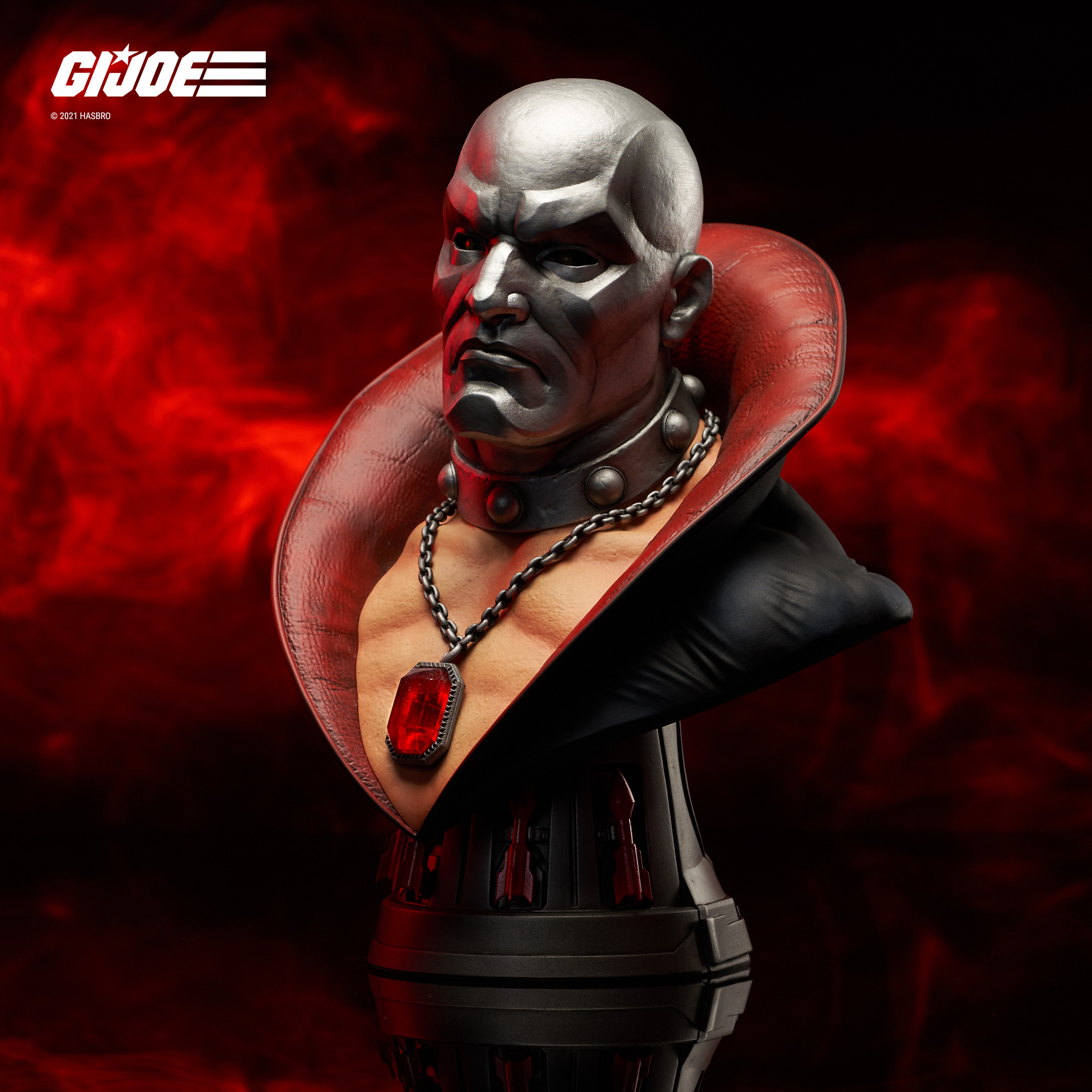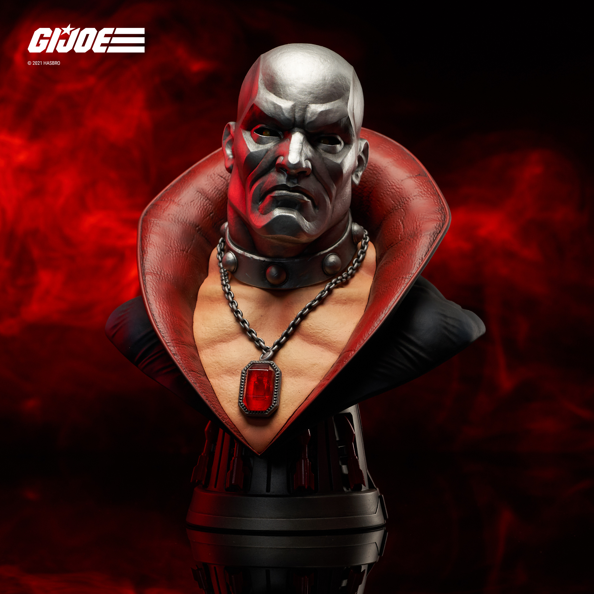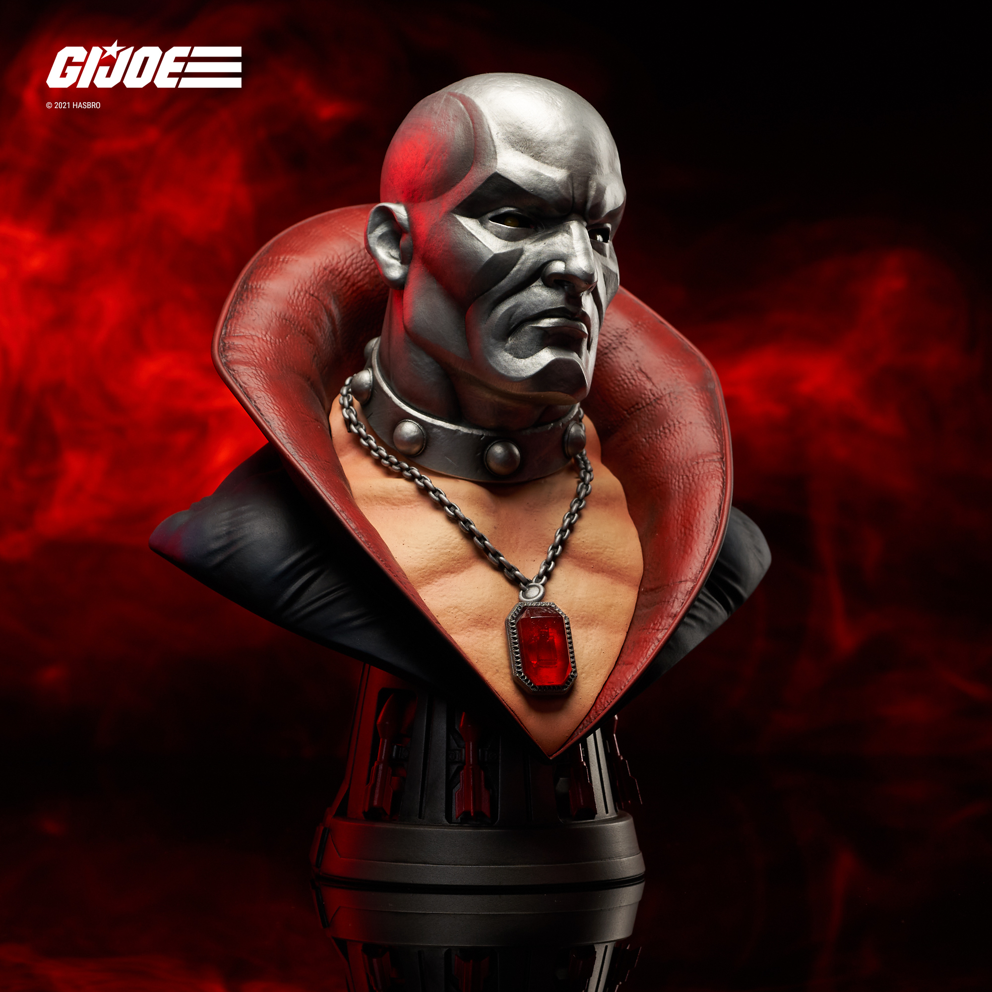 A Diamond Select Toys release! Cobraaaaa! Villainous Scottish arms dealer Destro is now a Legend in 3D, the second entry in the G.I. Joe series! Measuring approximately 10 inches tall, this half-scale bust of the Cobra associate features his awe-inspiring medallion and a pedestal base styled after his famous wrist rockets. Limited to only 1000 pieces, it comes packaged in a full-color box with a numbered certificate of authenticity. Designed by Joe Allard, sculpted by Jorge Santos Souza!