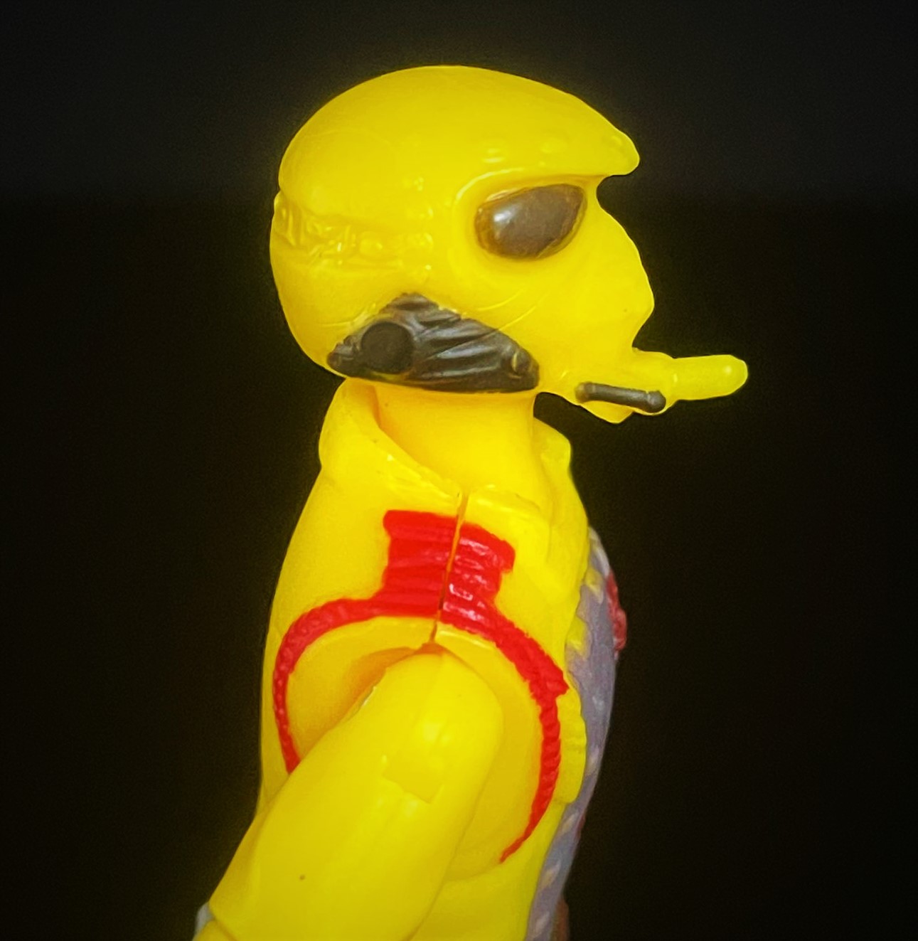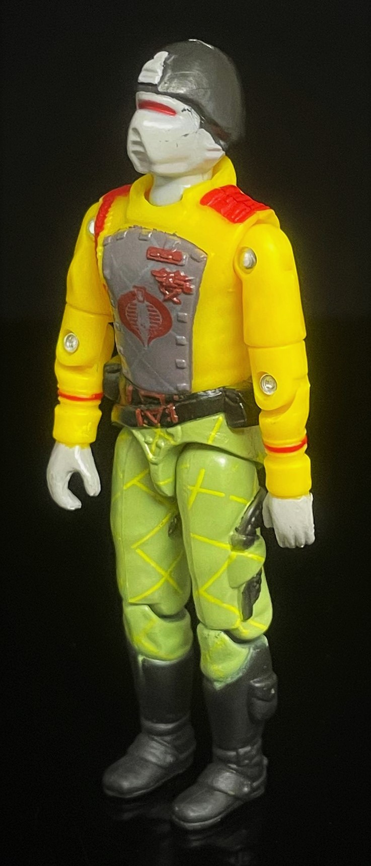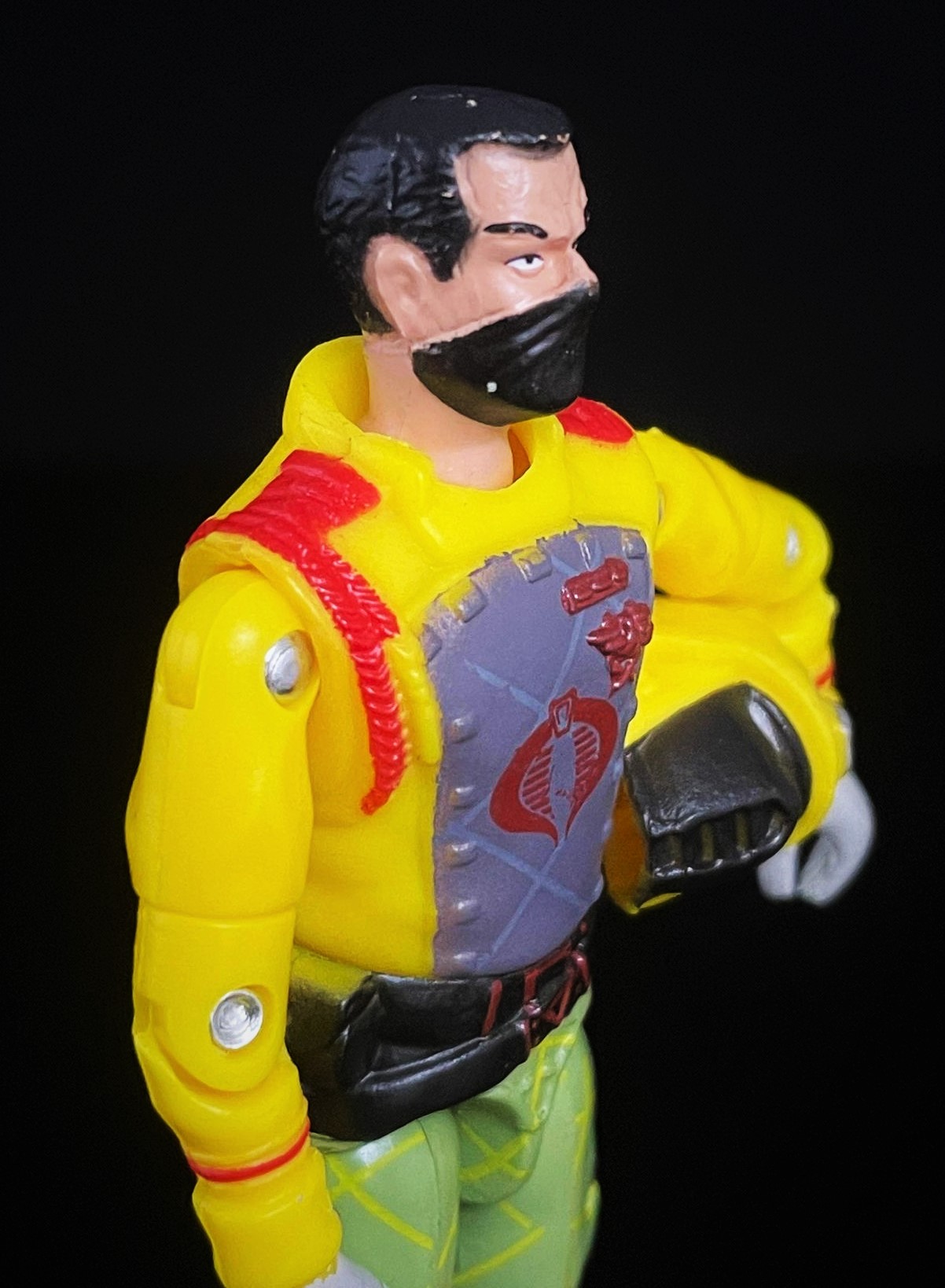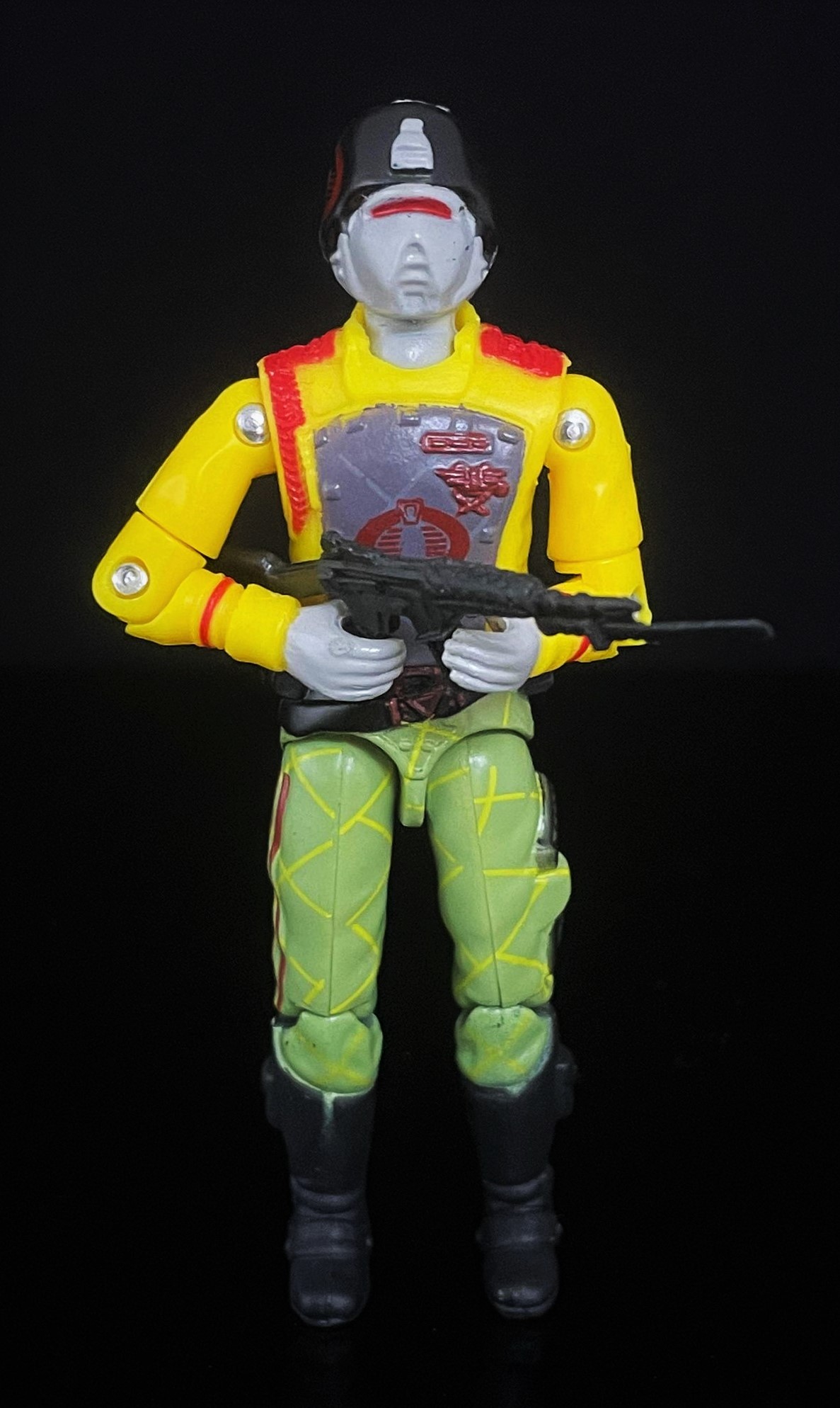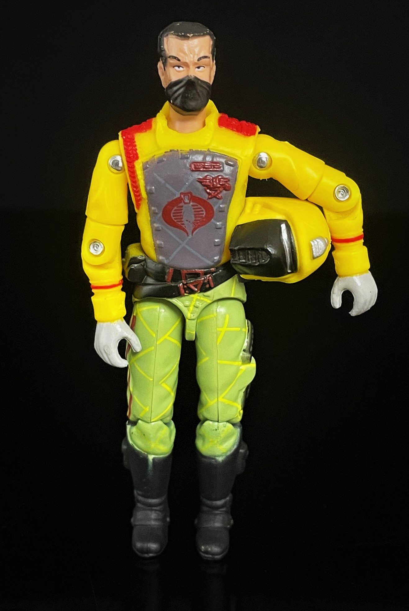 At first glance, one can see that this CG matches his 1989 counterpart pretty closely. The Python Crimson Guard’s uniform here is much brighter, with a richer yellow & green used in his uniform. He also has that distinct python striping on his pants, along with a cobra logo on his helmet. Alongside other subtle paint touches, it’s easy to distinguish the two apart.