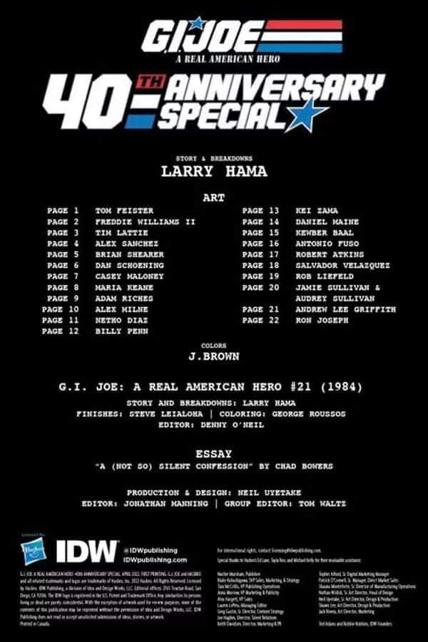 Additionally, the issue will contain stories and essays by creators who were influenced by Hama as well as a fourth wall-breaking short story written by Larry himself, celebrating his unparalleled four decades of work on G.I. Joe: ARAH.
