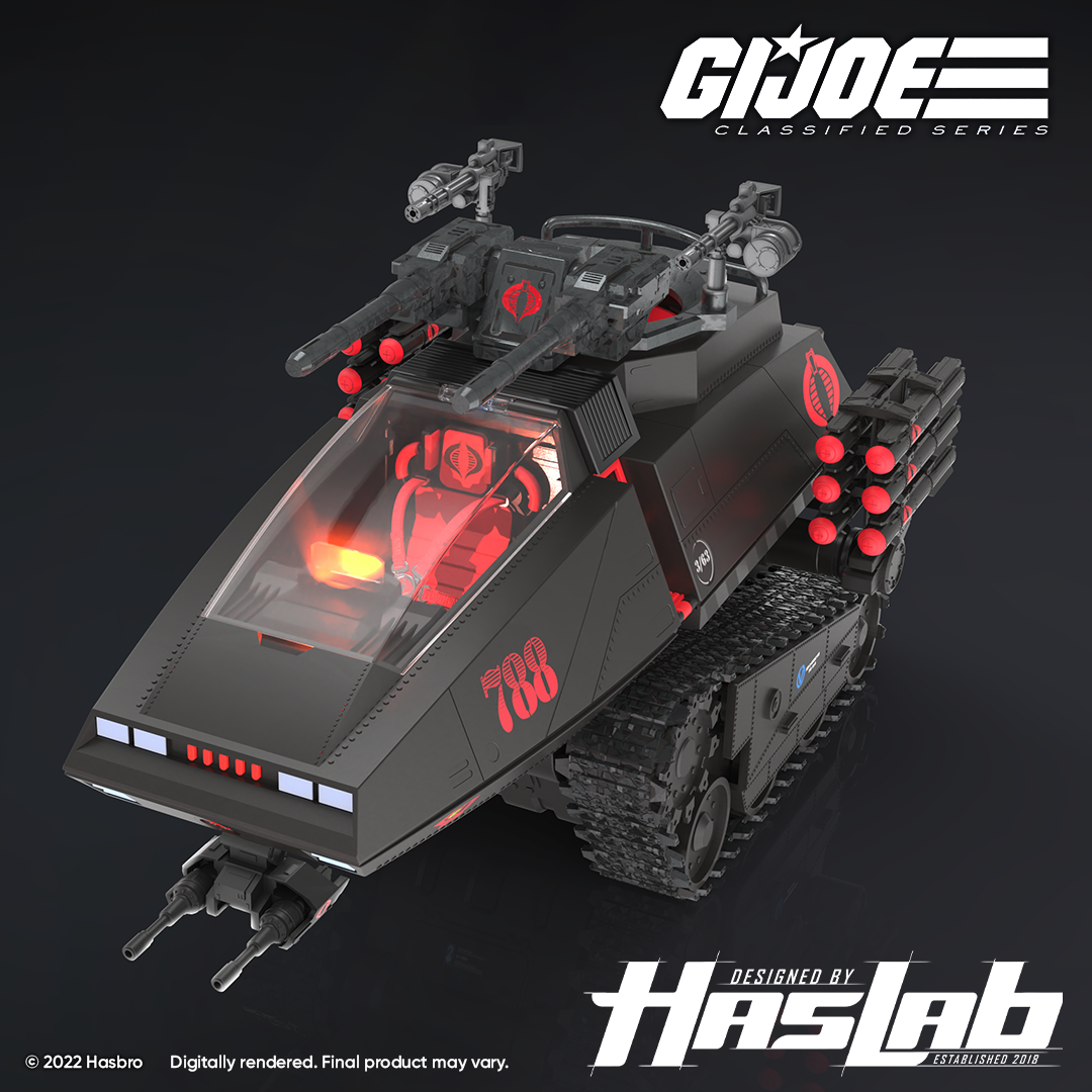 Congratulations and welcome to the Cobra World Order! Not only was the #GIJoe Classified Series #HasLab H.I.S.S. FULLY FUNDED in record-breaking time, you’ve also unlocked ALL the Classified Upgrades! Your customizable H.I.S.S. now includes the base vehicle offering with H.I.S.S. Driver Action Figure, Early-Bird H.I.S.S. Tactician Action Figure, removable MALHISS Missile Racks, Retro canopy and tread covers, the newly-recruited H.I.S.S. Gunner Figure, the HISSINTEGRATOR CANNON, two HISSRUPTOR ZX-5 BLASTER accessories, and the newly-sculpted 6-Inch Scale Retro Cardback Cobra Commander Action Figure inspired by the rare misprinted variant of the original 1982 “Real American Hero” figure release.
