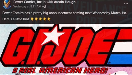Power Comics, Inc., a relatively unknown indy comic publisher have announced through their Facebook page that this coming Wednesday, March 1st, they’ll have a big announcement regarding…G.I.Joe? Check it out –