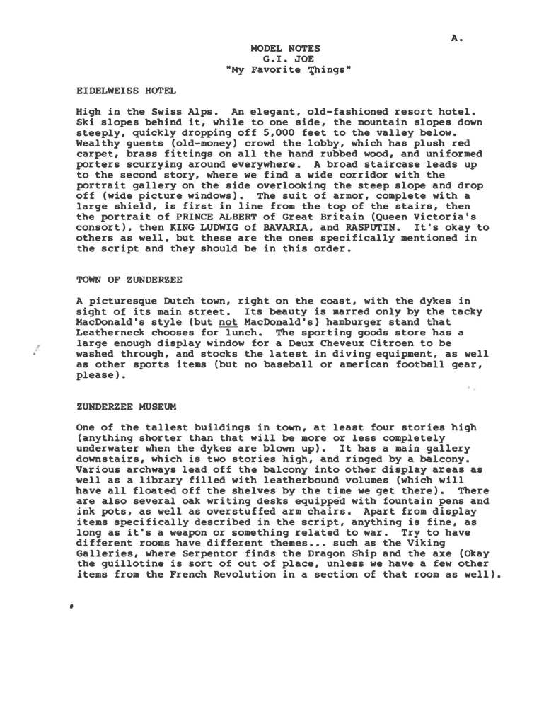 By way of Mr. Rich Helscher comes the first script from the original G.I.Joe series to be made public since 2010 – The season 2 episode “My Favorite Things”. You can check out that episode below –