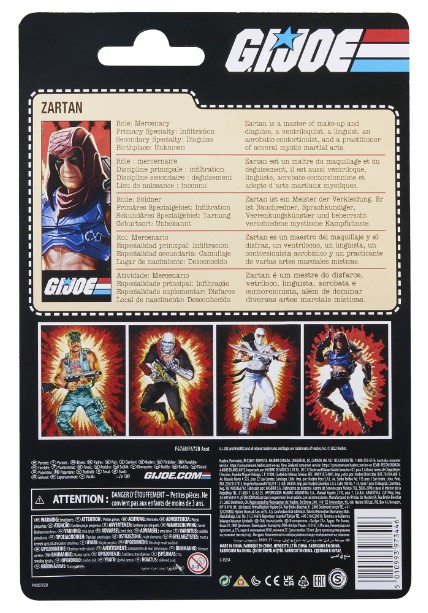 - CLASSIC-CARDBACK INSPIRED PACKAGING: This Zartan figure is presented in packaging that features design inspired by the Real American Hero figure line (Each sold separately. Subject to availability.)