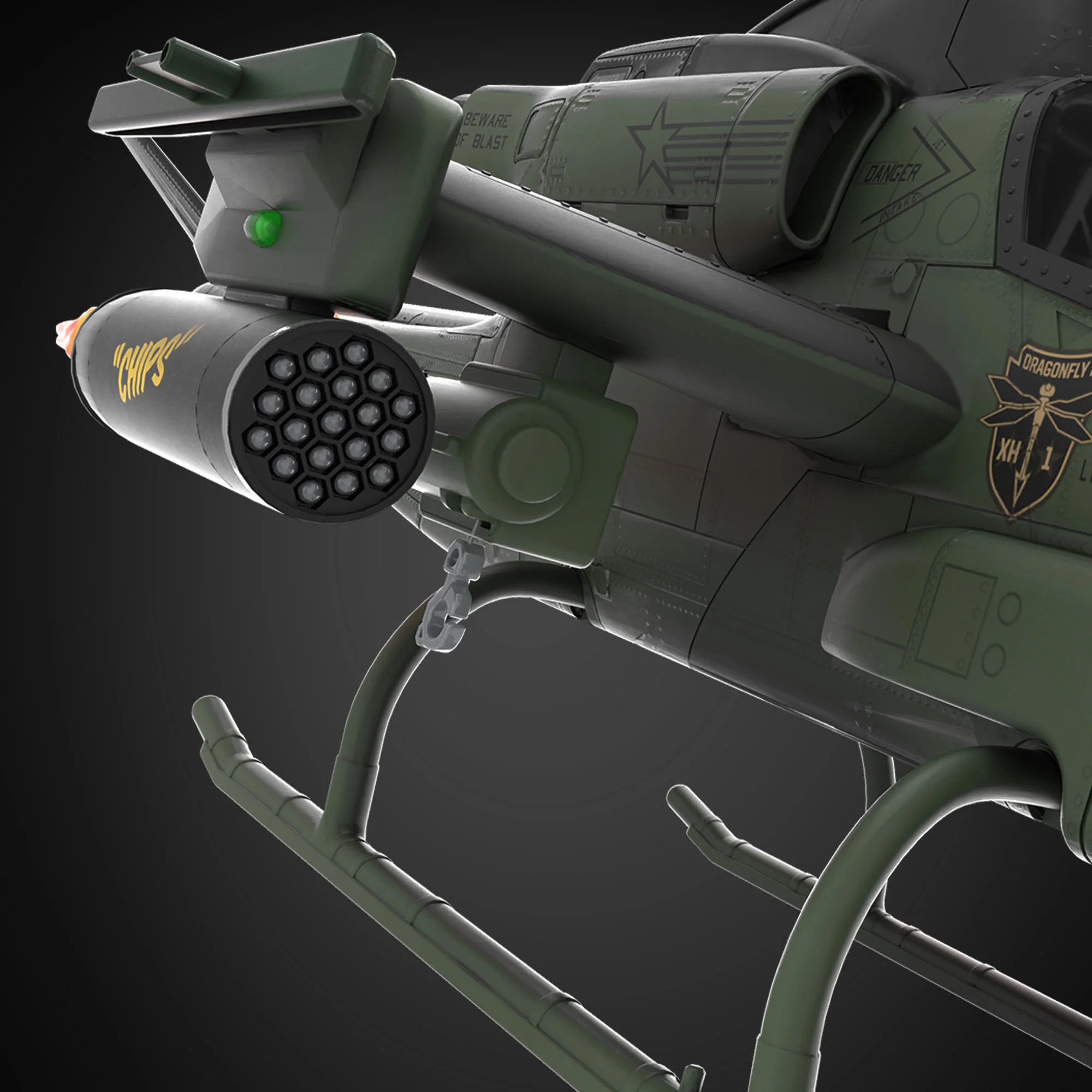 · Cannon Details: The 25MM Dragonbreath Rotary Nose Cannon rotates and can pivot up and down; and twin X-551 Mini-Cannon details below the cockpit increase the XH-1’s powerful attack capabilities.