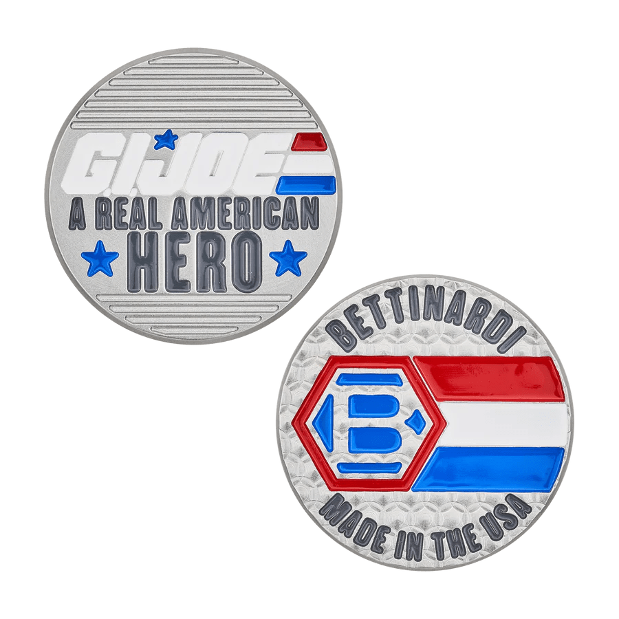 Take the fight to the front lines with the Bettinardi x G.I. Joe collection! This American-made DASS ball marker features a Tour Blast finish with the signature G.I JOE logo and “A Real American Hero” catchphrase on the front. The back features our Hex B modeled after the G.I. JOE logo with red, white, and blue stripes over Honeycomb™ milling. Limited quantities are available. Limit 1 per person. Good luck!