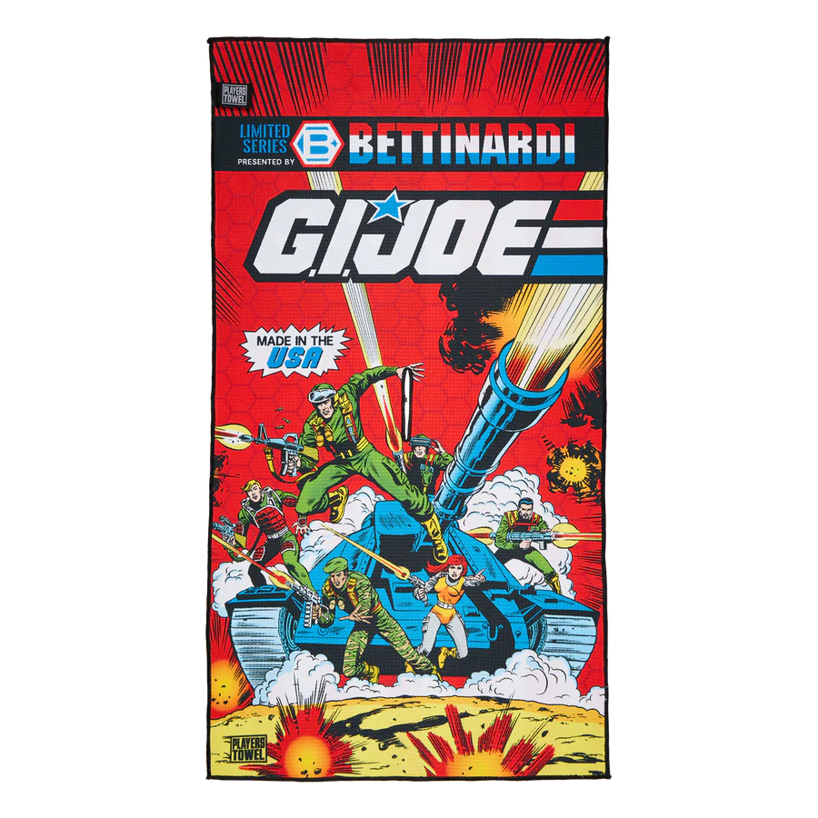 Take the fight to the front lines with the Bettinardi x G.I. Joe collection! This microfiber Players Towel features the classic G.I. Joe packaging graphic on one side and the American flag on the other. This microfiber towel was made here in the U.S.A and will keep your clubs clean and dry on the golf course. Now you know, and knowing is half the battle! Limited quantities are available. Limit 1 per person. Good luck!