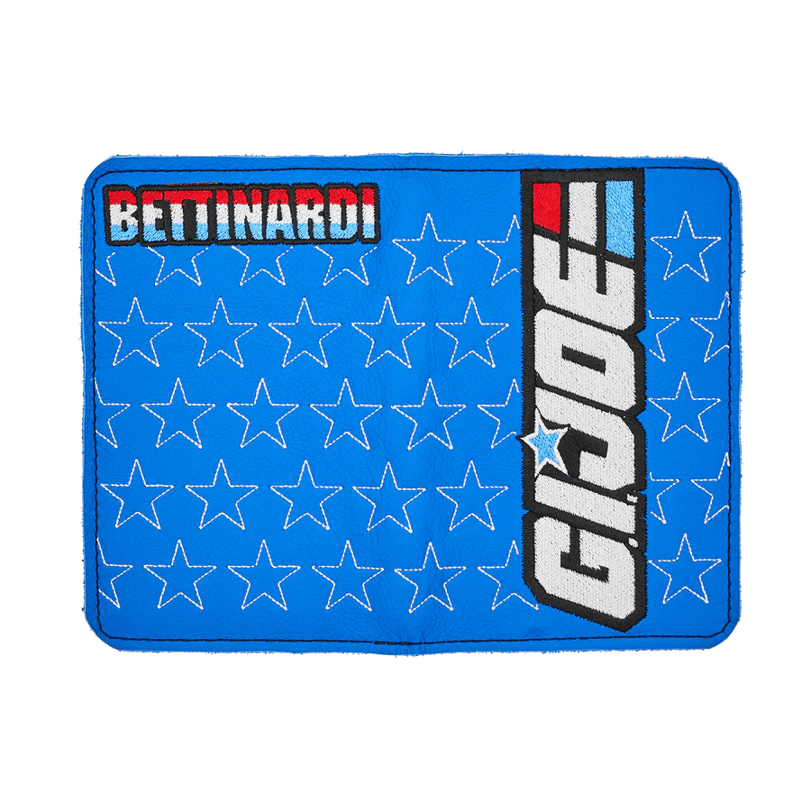 Take the fight to the front lines with the Bettinardi x G.I. Joe collection! As the Joes protect the world from the evil schemes of Cobra, this genuine leather holder protects your scorecard or yardage book from the elements. Made at our headquarters in Tinley Park, IL, this holder features the signature G.I JOE logo on front, our tri-color Bettinardi wordmark on the back, and a white-stitched star pattern across both sides. Limited quantities are available. Limit 1 per person. Good luck!