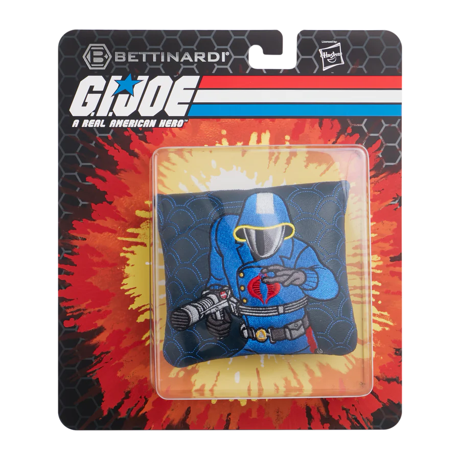 Take the fight to the front lines with the Bettinardi x G.I. Joe collection! This mallet putter headcover features Cobra Commander, the leader of the evil Cobra organization. For years he has sought world domination, no matter the cost to those who stand in his way or the innocent people left in his wake. This mallet putter headcover is featured on a navy base with a blue snakeskin pattern stitched across it. The Cobra insignia is displayed on the back with our Cobra Red Bettinardi wordmark on the closure strap. Limited quantities are available. Limit 1 per person. Good luck!
