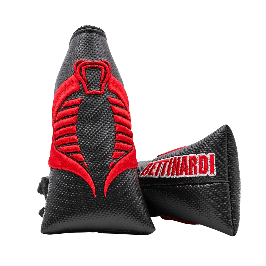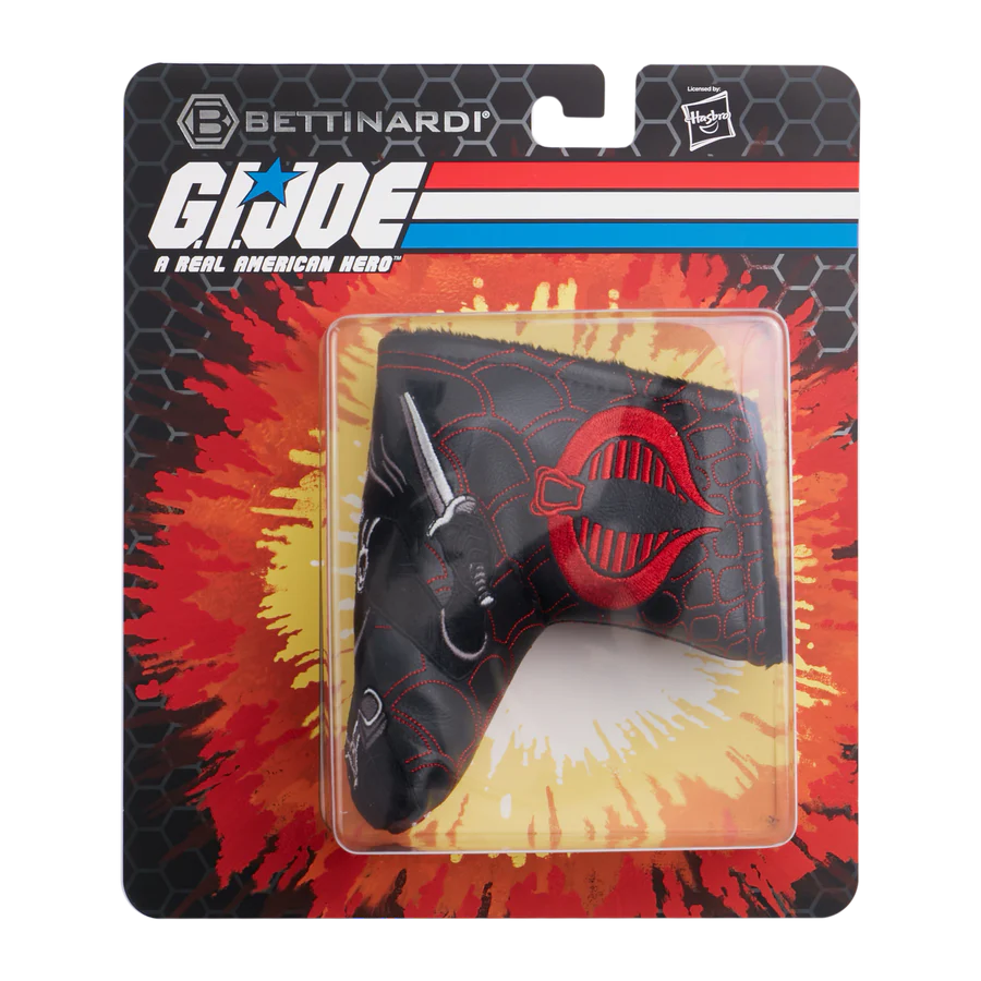 Take the fight to the front lines with the Bettinardi x G.I. Joe collection! This blade putter headcover features the Cobra insignia over top, our Hex B on the side, and our Cobra Red Bettinardi wordmark underneath. This headcover is stitched on a black carbon fiber base with a black plush interior. Join Cobra in their diabolical schemes to defeat the G.I Joes with this blade putter headcover. Limited quantities are available. Limit 1 per person. Good luck!