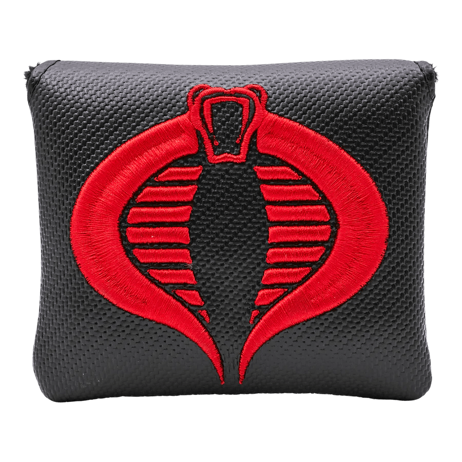 Take the fight to the front lines with the Bettinardi x G.I. Joe collection! This mallet putter headcover features the Cobra insignia on the front, our Hex B on the back, and our Cobra Red Bettinardi wordmark on the closure strap. This headcover is stitched on a black carbon fiber base with a black plush interior. Join Cobra in their diabolical schemes to defeat the G.I Joes with this mallet putter headcover. Limited quantities are available. Limit 1 per person. Good luck!
