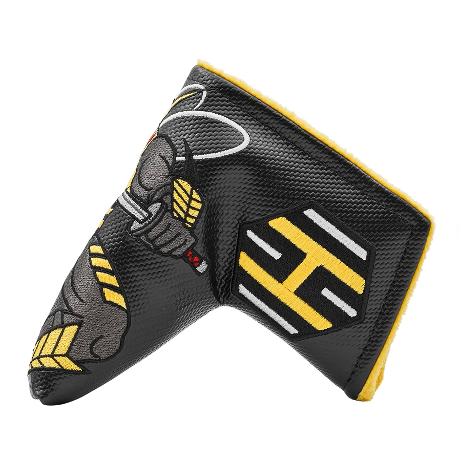 Take the fight to the front lines with the Bettinardi x G.I. Joe collection! This blade putter headcover features Cobra’s newest assassin: Sting Viper. He is a master of the katana, and his wings make him quicker than other ninjas and extra light on his feet. This headcover is stitched on a black carbon fiber base with a yellow plush interior for maximum protection. Limited quantities are available. Limit 1 per person. Good luck!