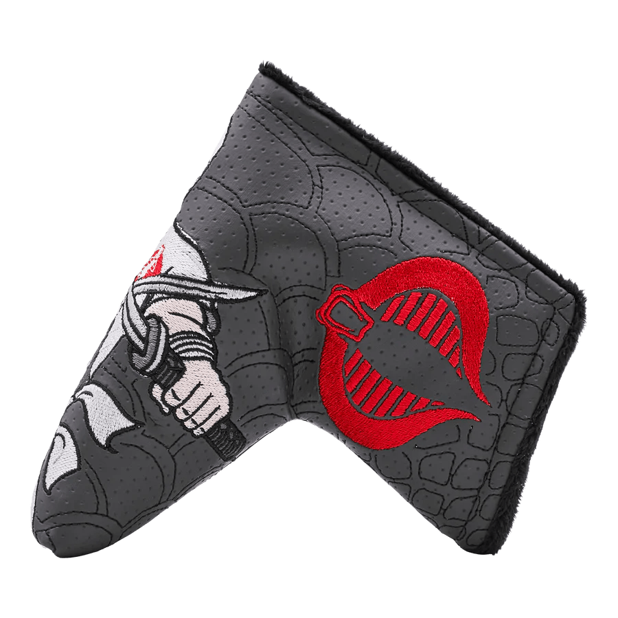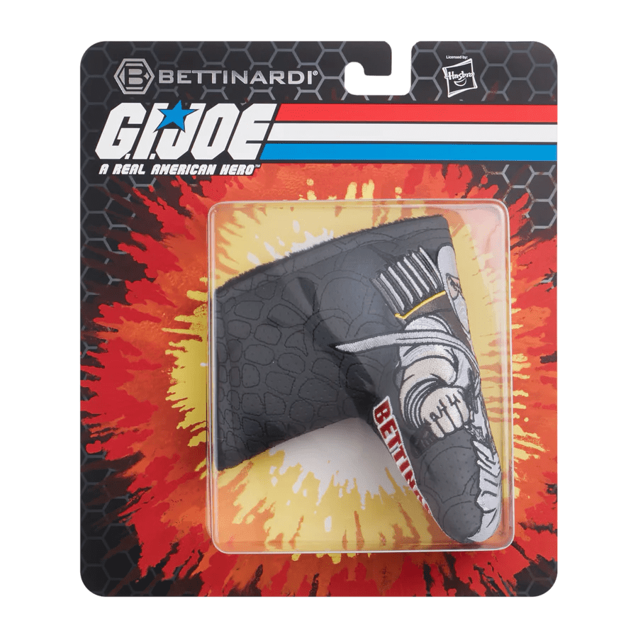 Take the fight to the front lines with the Bettinardi x G.I. Joe collection! This blade putter headcover features Storm Shadow – a ninja assassin and bodyguard for Cobra Commander. He can move with blinding speed and scale sheer walls with bare hands and feet. This blade putter headcover is featured on a gray perforated base with a black snakeskin pattern stitched across it. The Cobra insignia is displayed on the side with our Cobra Red Bettinardi wordmark underneath. Limited quantities are available. Limit 1 per person. Good luck!