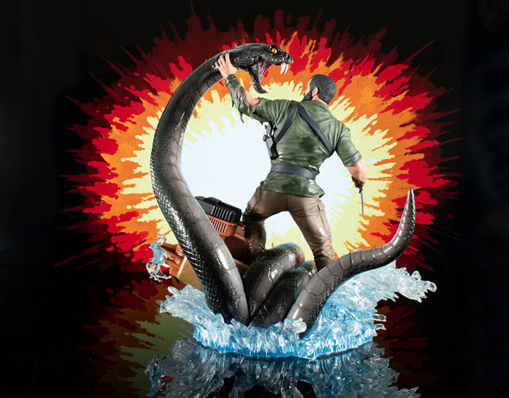 A Diamond Select Toys release! It’s time for adventure! G.I. Joe team founder Joseph Colton returns to his Adventure Team roots in this all-new Gallery Diorama depicting him battling a giant snake! Standing approximately 10 inches tall, this dynamic sculpture is made out of high-quality PVC and features detailed sculpting and paint applications. Plus, it features a real flocked head for lifelike hair and beard! It comes packaged in a full-color window box. Designed by Barry Bradfield, sculpted by Rocco Tartamella!