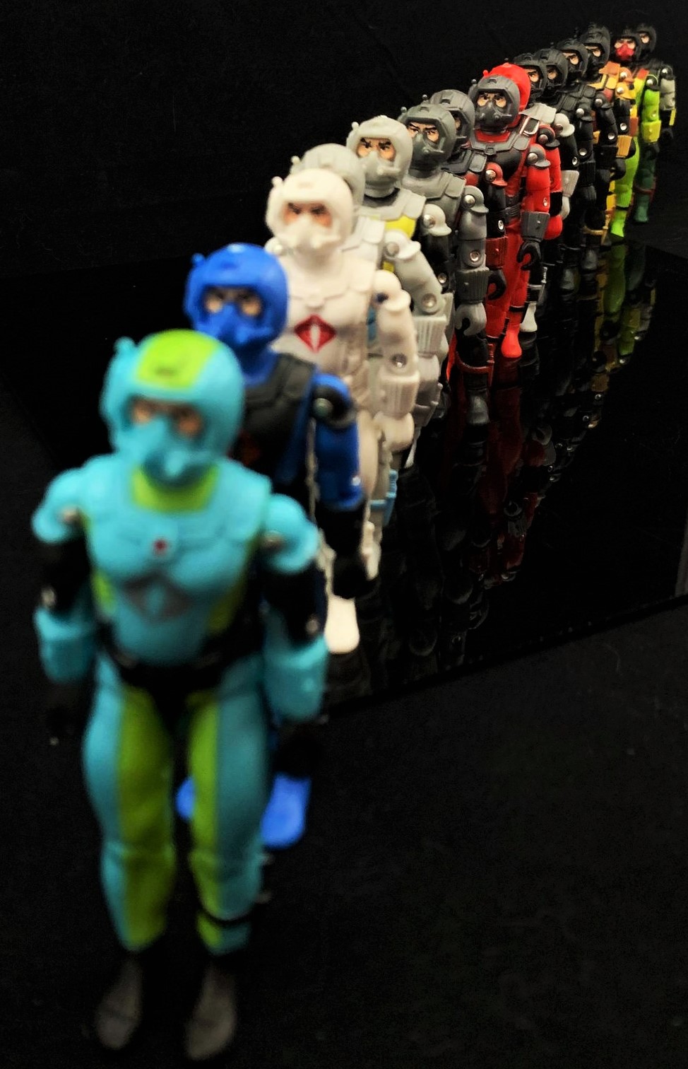 I’ve always been a big fan of the Eel mold, so seeing it in so many different colors really does it for me. The primary colors used on figures such as the Red Shadows, Black Ops and Ghost really pop.