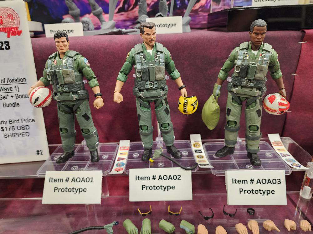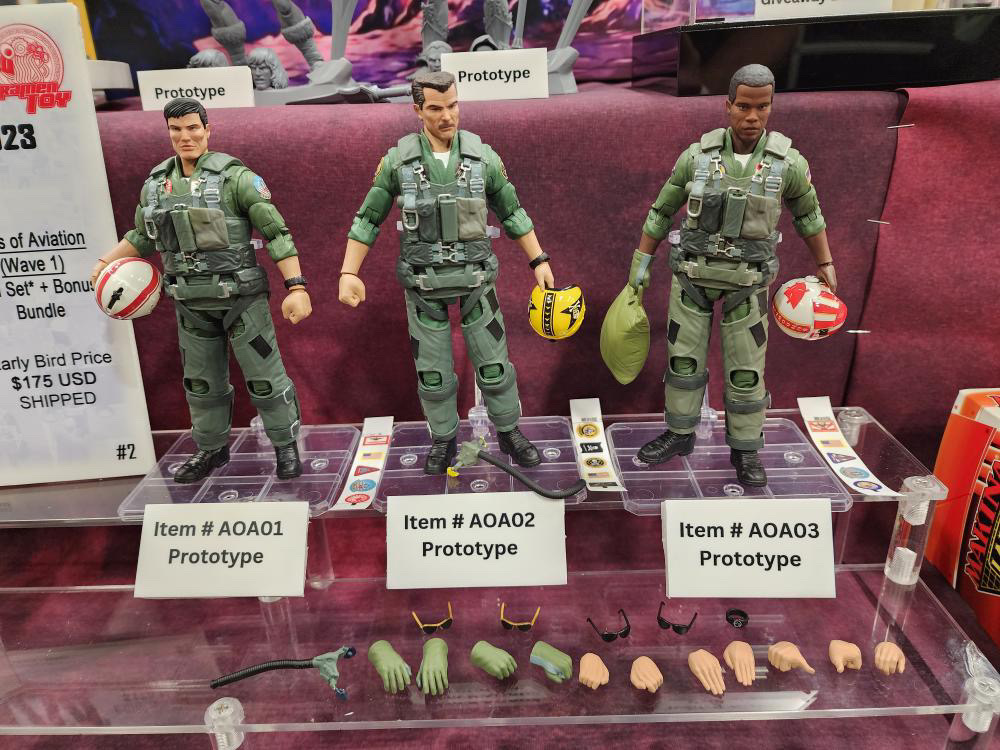Our first stop is at the Ramen Toys booth, where we get a good look at the Ramen Racer(s), along with their Aces of Aviation lineup. They also brought their “not Falcon” replacement head.