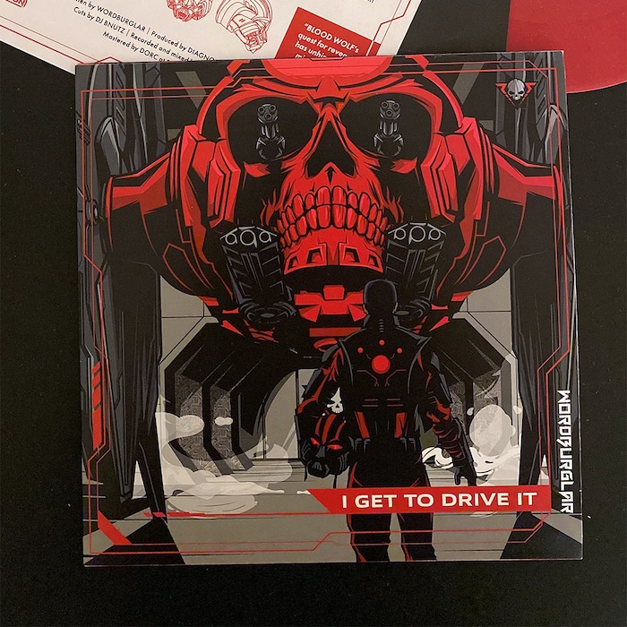 Another announcement – the BackerKit 7″ Vinyl album is ready to rock and roll! We’re bursting with excitement over this killer addition to the Roboskull MKII adventure that features an electrifying rendition of “Wolf Like Me” by Cosmic Orphan and an original track titled “I Get to Drive It”, where Blood Wolf opines and rhymes on the menacing Roboskull. Written and performed by Wordburglar, this is a can’t miss for Roboskull fans!