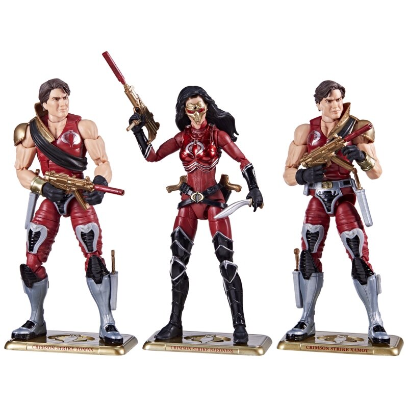Hasbro has shared word of it’s upcoming Pulse-Con programming block, alongside images of exclusives that will be available as part of this year’s event! As you would expect, the G.I.Joe team will be on hand with the anything-but-a-secret Exclusive G.I.Joe Crimson Strike Team 3 pack, consisting of the Baroness, Tomax and Xamot! Here’s the scoop –