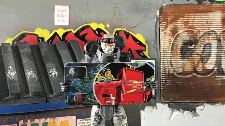 Firefly comes equipped with his classic red goggles, a futuristic pistol style weapon, an IED (is that what you would call an old-timesy dynamite bomb? Sorry, I’m so uneducated on proper terminology) and one heck of a fun bit of kibble, an aerial death drone with control tablet! This little nibblet feels like a TMNT mouser, but chock full of EFF YOU. All of this gear can be stored in FF’s back pack, allowing him to frolic across enemy front lines without fear or dropping hsi accessories, rendering him both useless on the battlefield and on eBay.