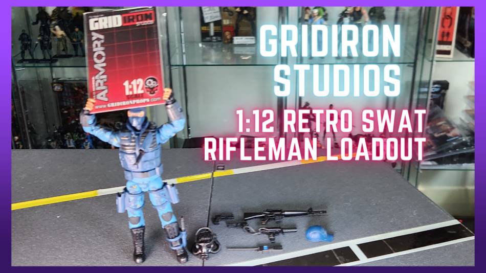 Many thanks again go to Adam of Shark Eyed Toy View, this time for giving us a look at the 1:12 scale “Retro SWAT Rifleman Loadout” kit by Gridiron Studios!