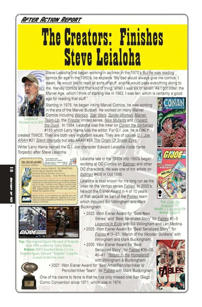 - The Creators: spotlight pages on the biographies of the creators of #21 & #21B which includes Larry Hama, Steve Leialoha, George Roussos, Denny O’Neil, Jim Shooter, Klaus Janson, Ed Hannigan and Jeremy Dale.