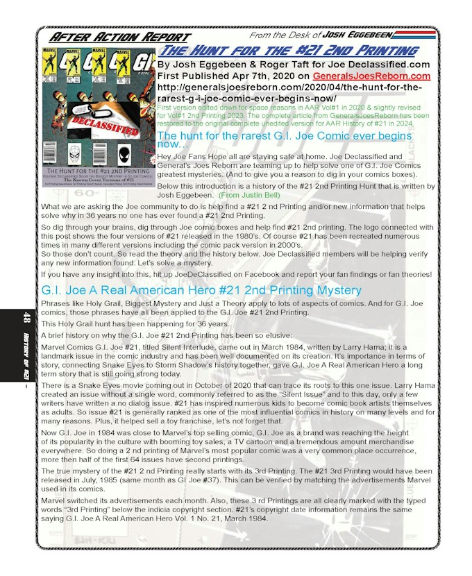 - The Hunt for #21 2nd Printing with contributions by Tommy Hazleton. This section tracks the history of the hunt for the elusive 2nd Printing that was first reported in AAR books in 2020 and with further updates here.
