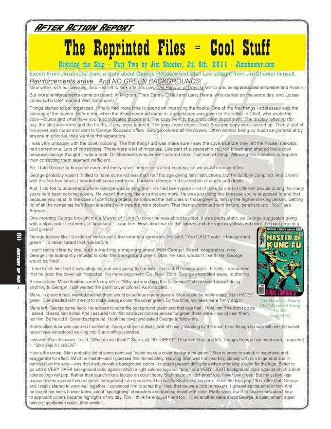 - Reprinted stories from JimShooter.com about the creators and Marvel Comics during his time as Editor in Chief.