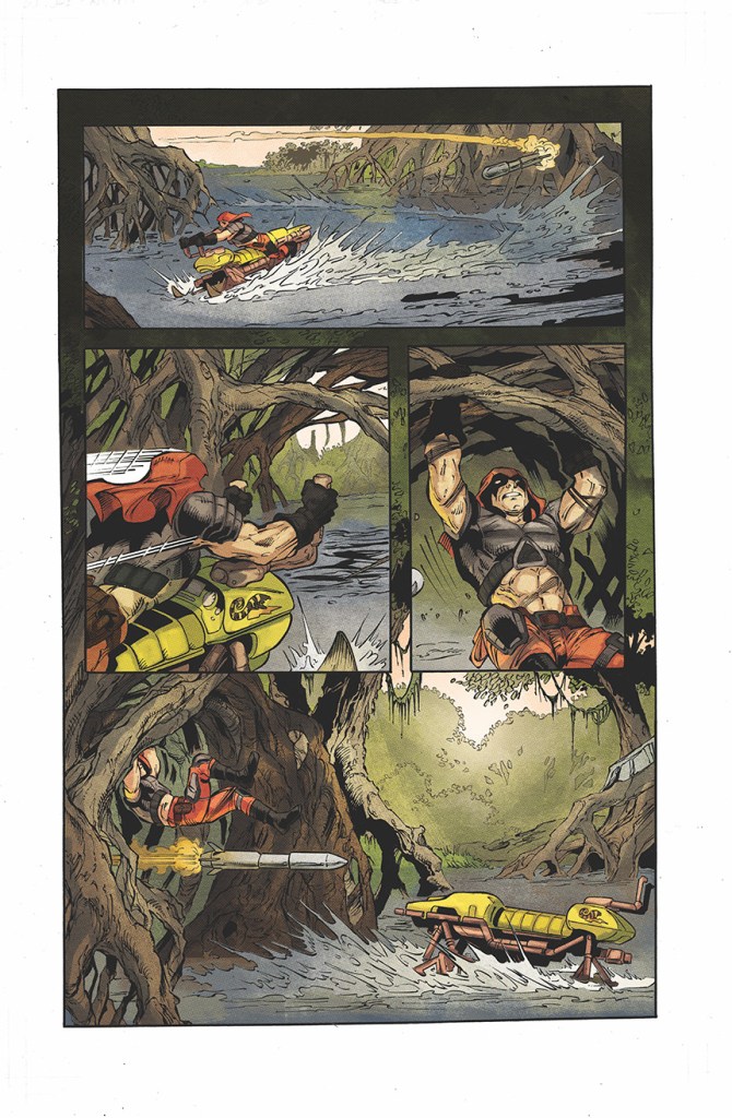 Fan-favorite artist Paul Pelletier is known for the reliably vibrant draftsmanship he’s brought Marvel and DC — part cartoon, part realism; in the grand tradition of Neal Adams and Alan Davis. The comics vet will soon make his G.I. Joe debut, when he serves as guest artist on Skybound’s G.I. Joe: A Real American Hero #306, written by the equally stalwart Larry Hama. You can check out three pages from the May release, featuring everyone’s favorite Dreadnok Zartan, after these office details from Skybound HQ…