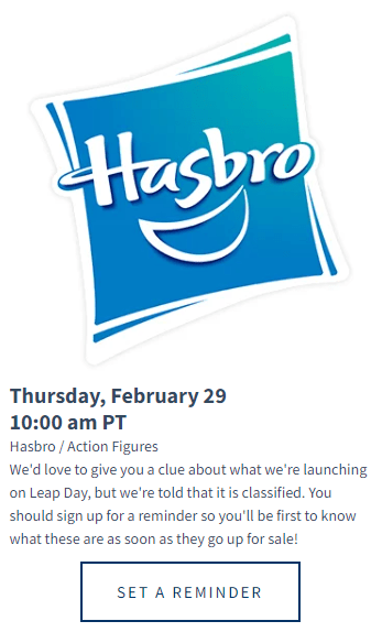 Entertainment Earth’s drop zone will typically outline what’s in the pipeline. For instance, here’s what they show for the 29th: