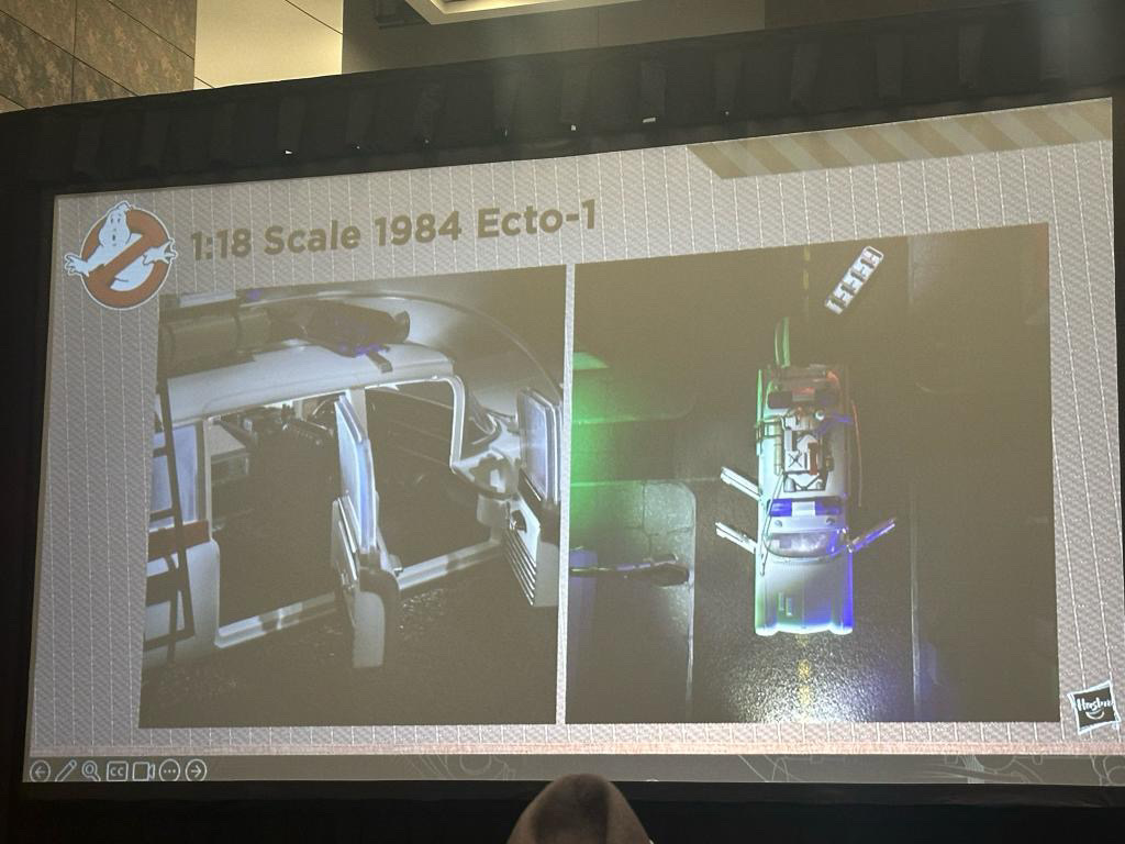 Something really interesting? Aside from the Star Wars and Transformers offerings that were shared (86 Swoop! WOO HOO!), there was this anomaly that I didn’t ask for, but I sure do want. It’s the Ghostbusters line up, with Ecto-1, in 1:18 scale! I didn’t have o-ring Ghost Busters on my bingo card but I’m here for it! Check it out –