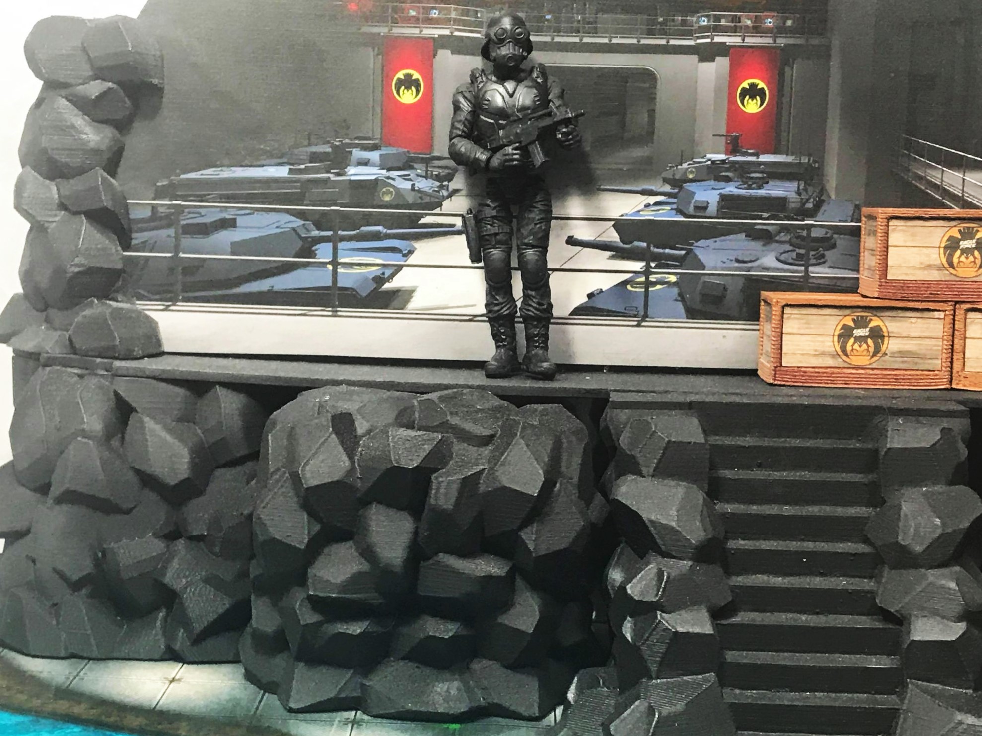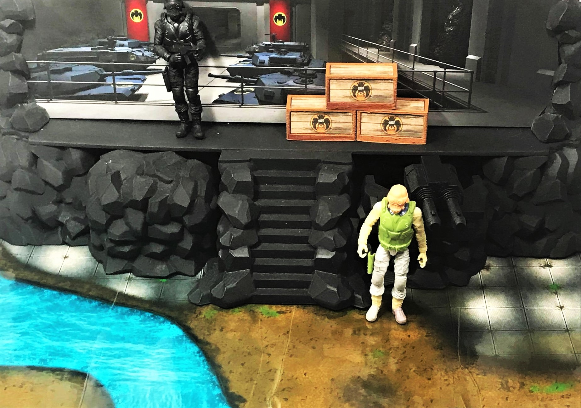 - Eagle Island Playset – To start, figures couldn’t even stand on the steps of the Island, so functionality was limited. My flags came with hair stuck underneath the laminate, with air bubbles throughout. The mat that goes underneath the playset arrived folded and damaged, as it wasn’t placed in a tube, but folded instead, causing the laminate to come up. Ooof. As with the communication stations, the piece wasn’t sanded after printing, so there are/were a lot of rough edges.