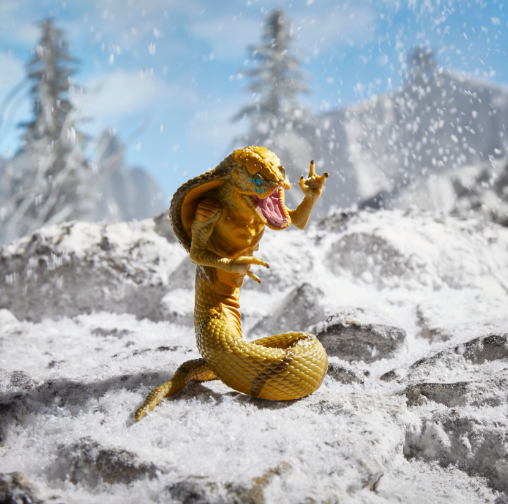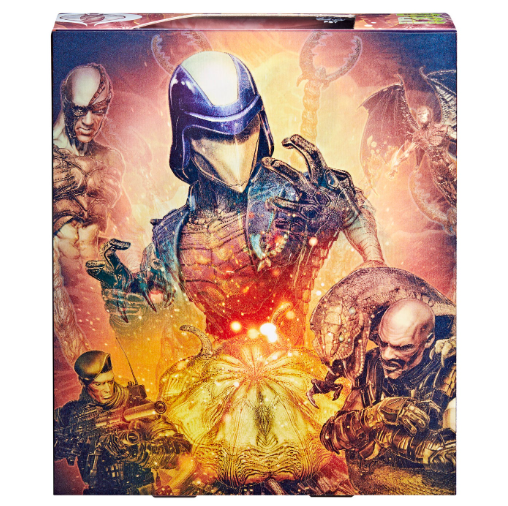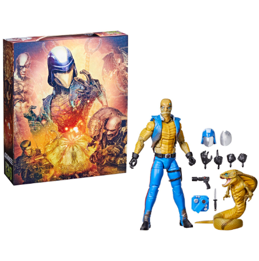 The 130th figure in the G.I. Joe Classified line offers collectors a new take on iconic villain Cobra Commander. This particular Cobra Commander is modeled after the character’s mutated appearance in G.I. Joe: The Movie. The figure includes alternate head, hands and weapons, as well as a bonus figure of Cobra Commander mutated into snake form. The figure comes packaged inside a deluxe box with lenticular imagery and a display window that shows off the numerous accessories.
