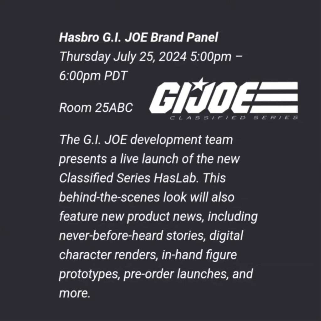Heads up! Scheduling info for SDCC 2024 is available for your viewing pleasure, including details on the G.I.Joe Panel which will kick off the next HasLab event. Here’s the scoop –