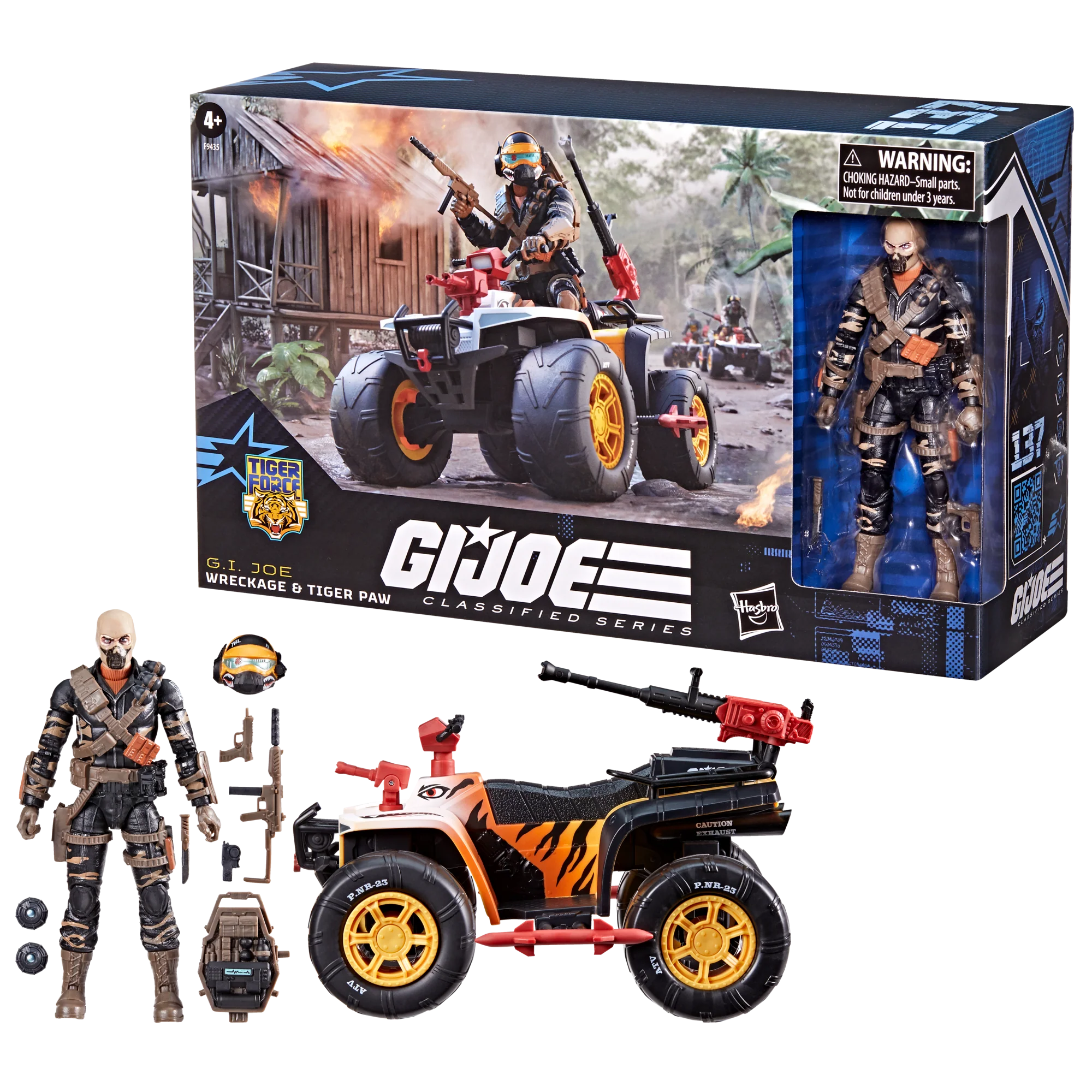 - CLASSIC TIGER FORCE WRECKAGE & TIGER CLAW-INSPIRED DESIGN: Features a classic design updated to bring the G.I. Joe Demolitions Specialist and ATV into the modern era with 10 accessory pieces and 14 unassembled pieces inspired by the character’s rich history